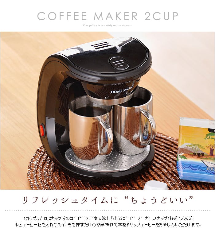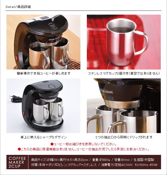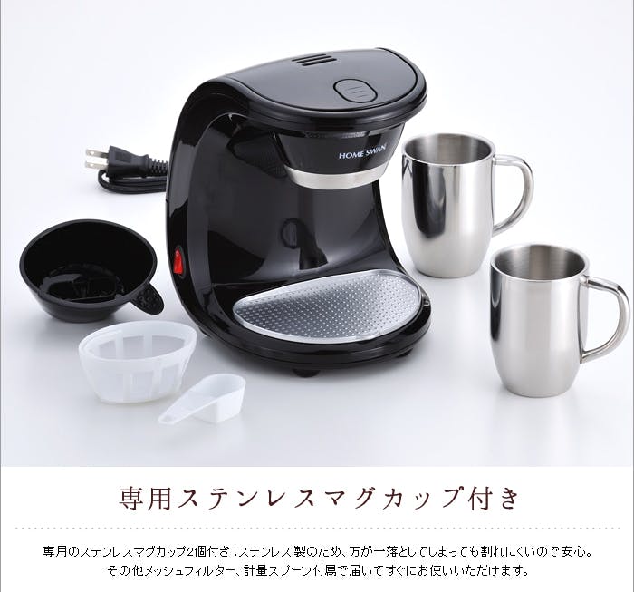 コーヒーメーカー 2カップ ステンレスマグ カフェ ドリップ 2カップ同時 キッチン家電 珈琲 コーヒー