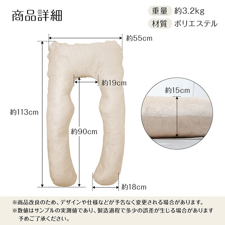 様々な寝姿勢に対応!!全身をサポートするU字まくら ●分厚くボリュームのある独自のU字形状で全身をしっかり支えます。うつ伏せ・横向き・抱き枕など色々な寝姿勢でリラックスして快眠できます。 ●滑らかな肌触り ●つい抱きたくなる柔らかさ ●うつ伏せ、横向き、仰向け ●丸洗いOK!(カバーのみ)