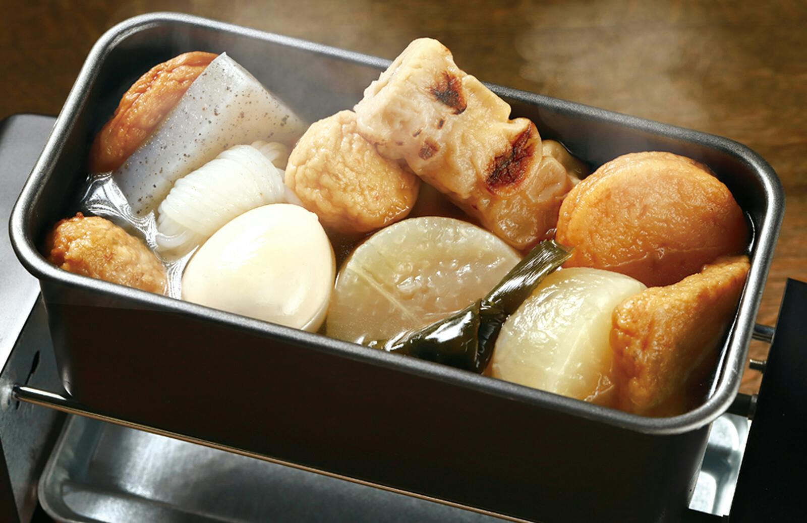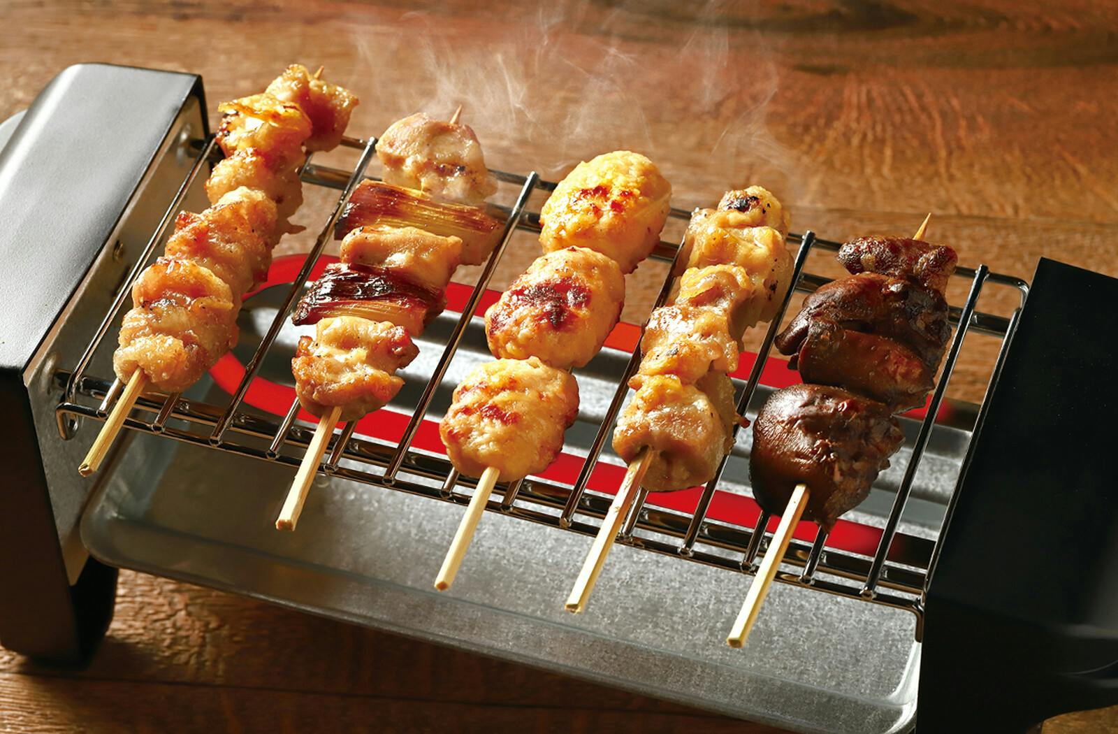 本体:PA、トレイ:アルミニウム(亜鉛メッキ加工)、おでん鍋・熱燗鍋:スチール(フッ素樹脂加工)、焼き鳥網・炙り網:鉄(クロムメッキ加工)、とっくり・おちょこ:陶器