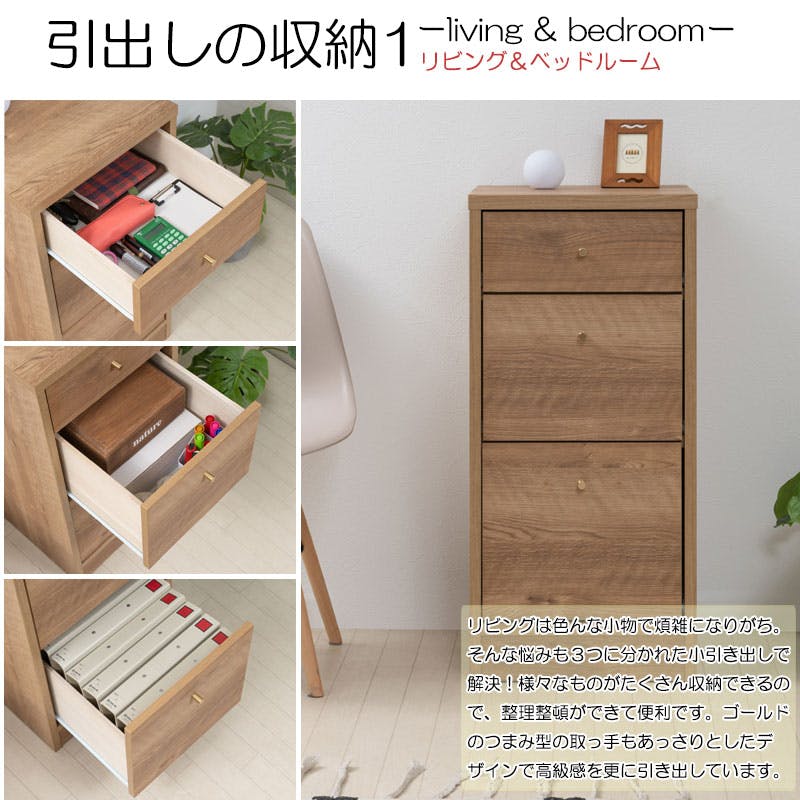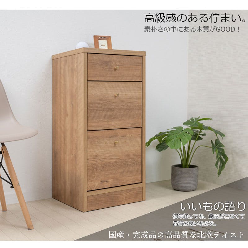 ■商品サイズ/本体:(約)幅40.5×奥行40.5×高さ85.5cm■引出し内寸/(約)幅30.5×奥行33.5×深さ(浅)9.5(有12)(中)19.5(有22.5)(深)19.5(有28.5)cm■耐荷重量/天板:(約)20kg■商品重量/(約)16kg■日本製■完成品(取っ手のみ取り付け)