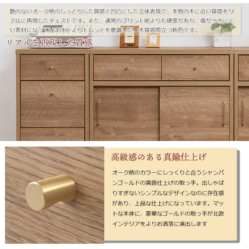 ■商品の仕様/天板・前板:強化プリント紙化粧繊維板、側板・背板:プリント紙化粧繊維板、取っ手:真鍮仕上げ