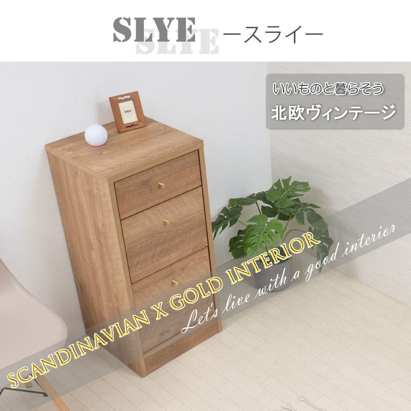 薄型キッチンカウンター下収納&リビングボードにもなる 【SLYE】 幅40.5 完成品 日本製 チェスト ナチュラル カウンター下収納 木製 薄型 真鍮 真鍮取っ手 真鍮仕上げ 棚 スリム DVD CD 小物 リビング キッチン リビングボード シンプル