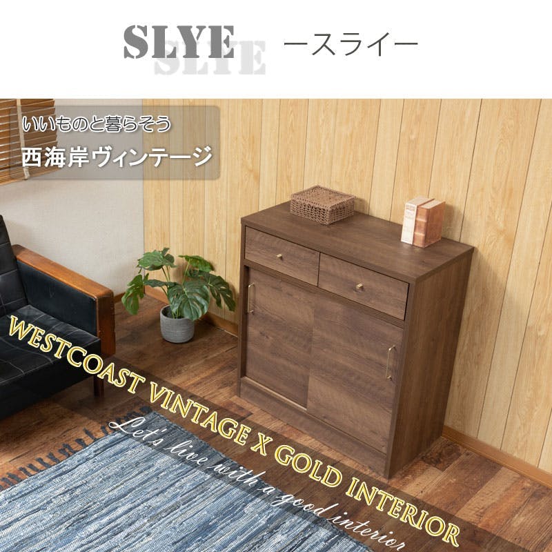 • A4収納ができる薄型キッチンカウンター下収納&リビングボードにもなる 【SLYE】 幅80.5 完成品 日本製 キャビネット ブラウン カウンター下収納 木製 薄型 収納 棚 スリム DVD CD 小物 リビング キッチン リビングボード シンプル