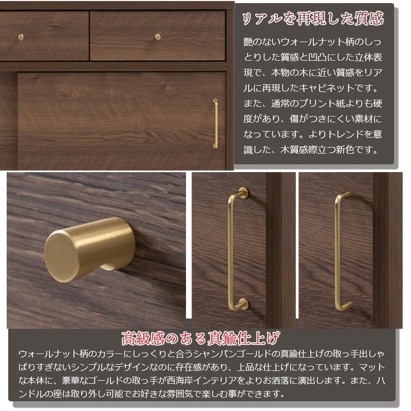 ■商品の仕様/天板・前板:強化プリント紙化粧繊維板、側板・背板:プリント紙化粧繊維板、取っ手:真鍮仕上げ