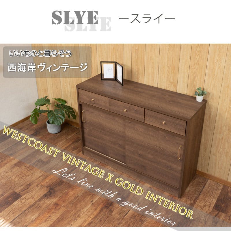 A4収納ができる薄型キッチンカウンター下収納&リビングボードにもなる 【SLYE】 幅120.5 完成品 日本製 キャビネット ブラウン カウンター下収納 木製 薄型 収納 棚 スリム DVD CD 小物 リビング キッチン リビングボード シンプル