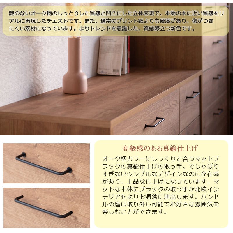 ■商品の仕様/天板・前板:強化プリント紙化粧繊維板、側板:プリント紙化粧繊維板、取っ手:真鍮仕上げ