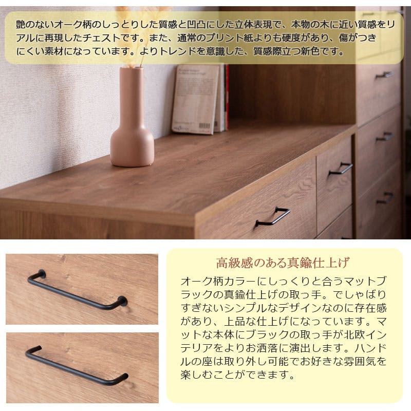 ■商品の仕様/天板・前板:強化プリント紙化粧繊維板、側板:プリント紙化粧繊維板、取っ手:真鍮仕上げ