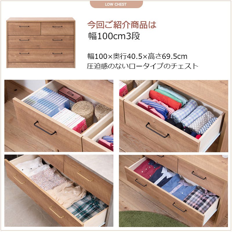 高級感のある真鍮仕上げ取っ手チェスト 【BLAN】 幅100 奥行 40.5 高さ69.5 完成品 日本製 チェスト ナチュラル 木製 真鍮 真鍮取っ手 真鍮仕上げ ウォークインクローゼット DVD CD 小物 リビング リビングボード