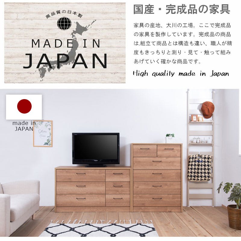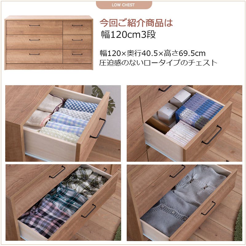 高級感のある真鍮仕上げ取っ手チェスト 【BLAN】幅120 奥行40.5 高さ69.5 完成品 日本製 チェスト チュラル 木製 真鍮 真鍮取っ手 真鍮仕上げ ウォークインクローゼット DVD CD 衣類収納