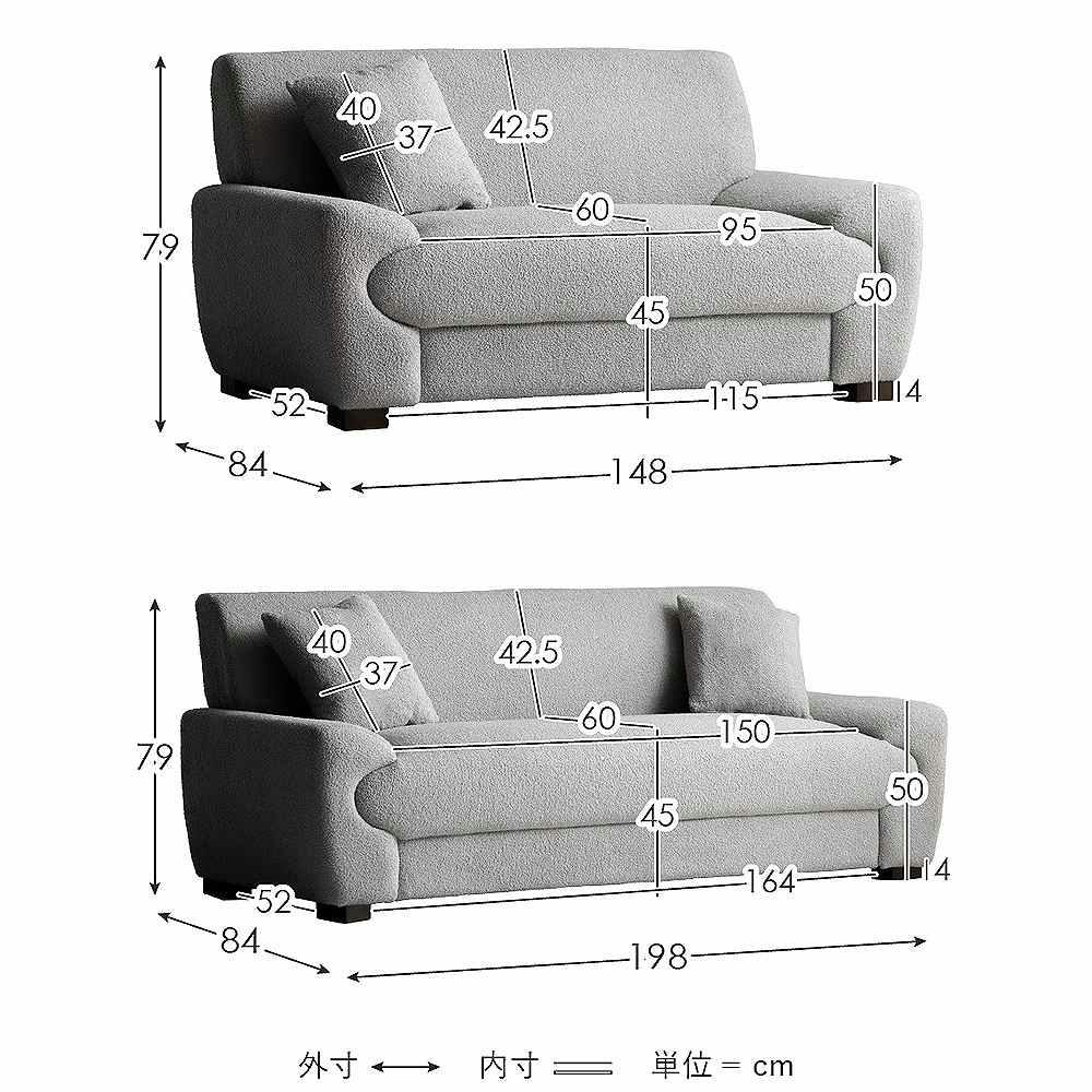 組立式(約10分)脚部・背もたれの取り付け、クッション付き(2P/1つ、3P/2つ)