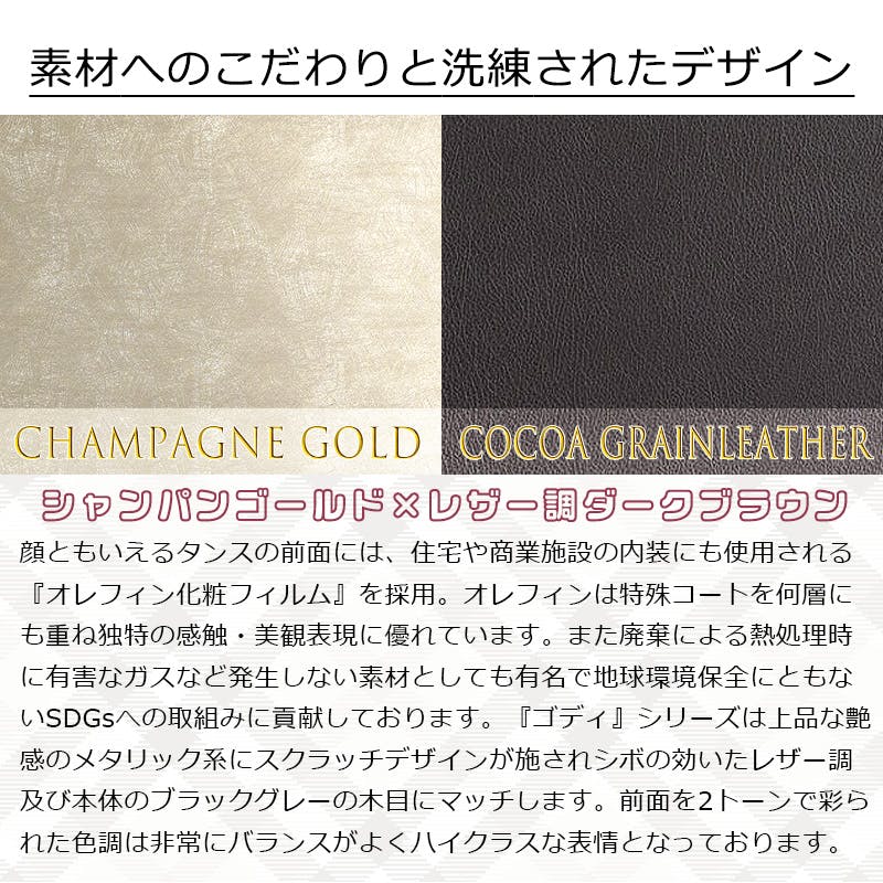 ■商品の仕様/材質/天板:強化プリント紙化粧繊維板、前板:オレフィン化粧繊維板、引出しの側板と奥板:天然木桐材、その他:プリント紙化粧繊維板