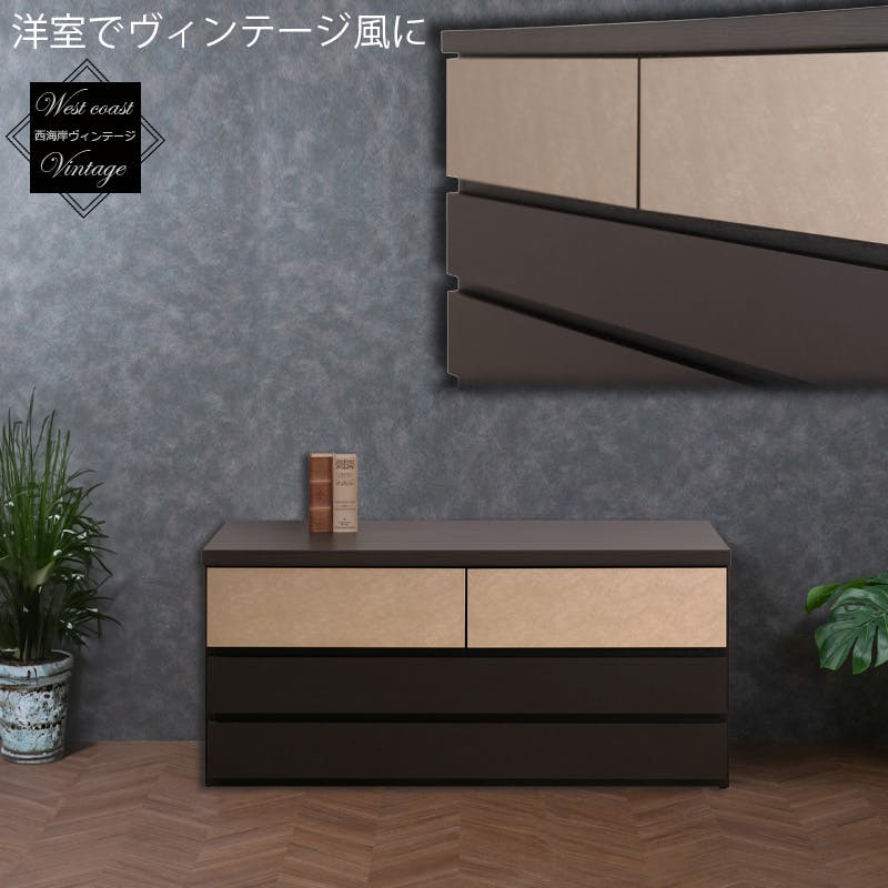 【G.D.】 幅100 奥行44.5 高さ46cm 新モデルリニューアル 上質な素材にこだわったモダン桐チェスト 3段 日本製 完成品 ロータイプ ローチェスト ブラック レザー調 ゴールド メタル 着物収納 着物 箪笥 おしゃれ