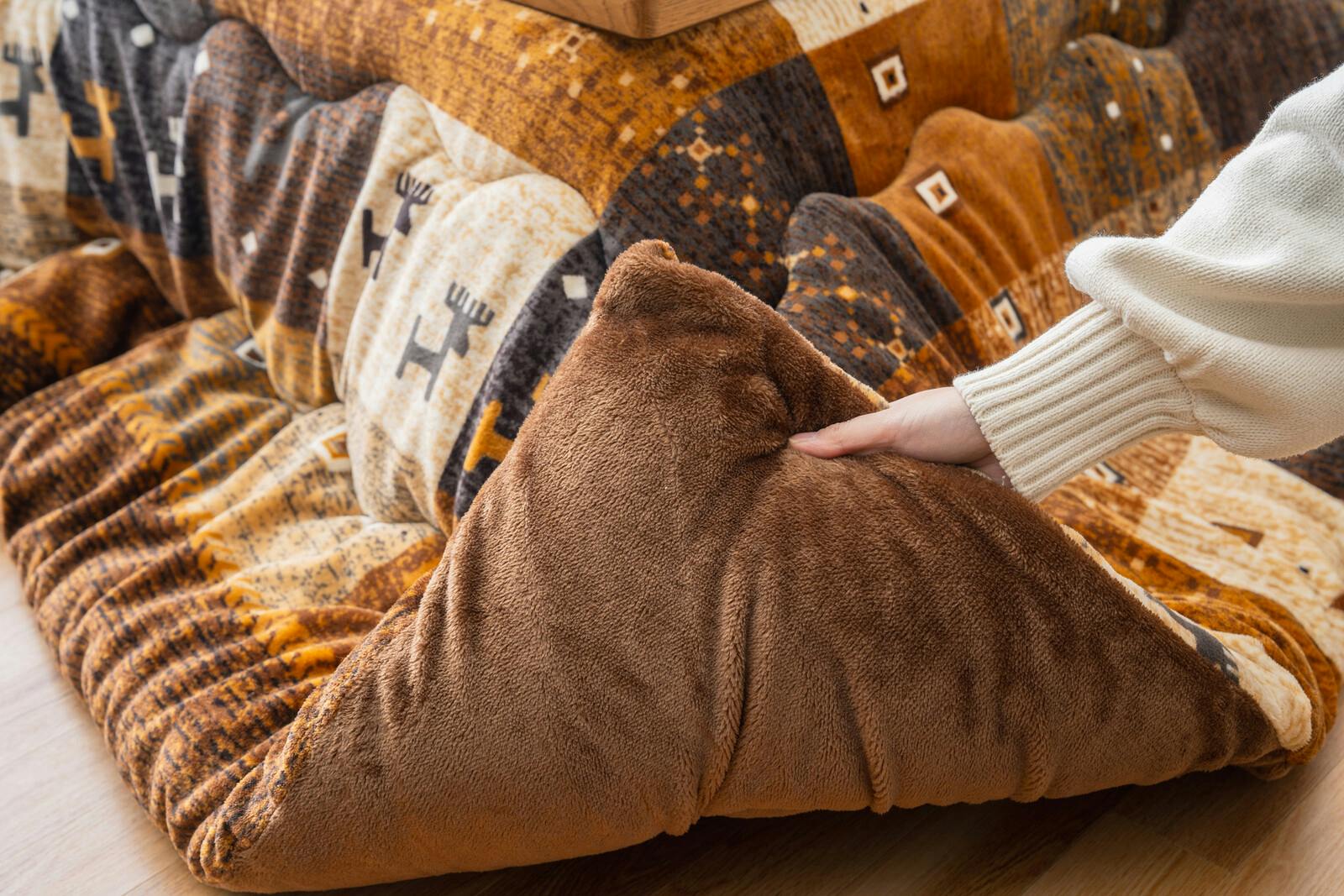 保温性抜群!!すぐに暖まる速暖こたつ布団!! ●裏地に熱伝導性が高く、蓄熱・保温性に優れたグラフェン繊維を使用。こたつに入った瞬間から暖かく、省エネにも役立ちます。 ●撥水加工 ●表面は水分を弾き染みにくく、お手入れ楽な撥水素材