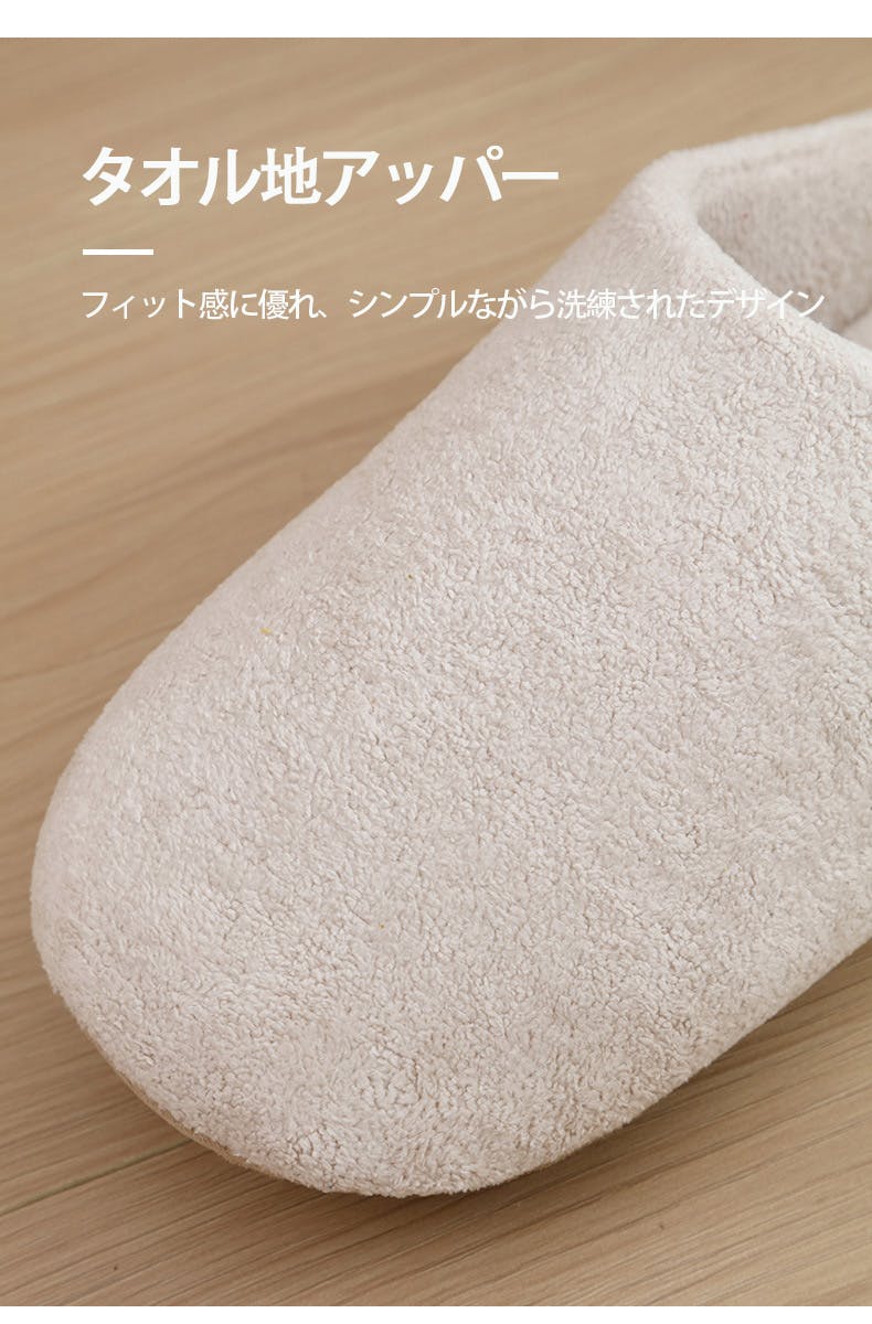 吸湿性と吸汗性に優れた素材を使用したスリッパです。高い通気性と優れた吸放湿性により、足元のムレを効果的に抑えます。さらりとした快適な肌触りと、温もりのある素材で、暖かさと湿気対策を両立。