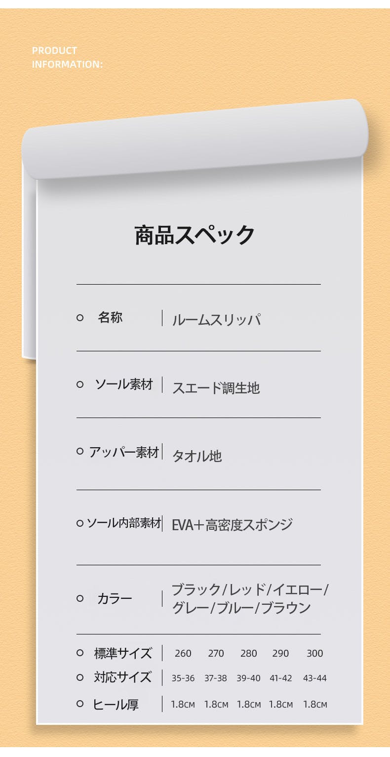 冬用スリッパのサイズをご確認ください:22.5-23(35-36)、23.5-24(37-38)、24.5-25(39-40)、25.5-26.5(41-43)、27-27.5(44-45)。