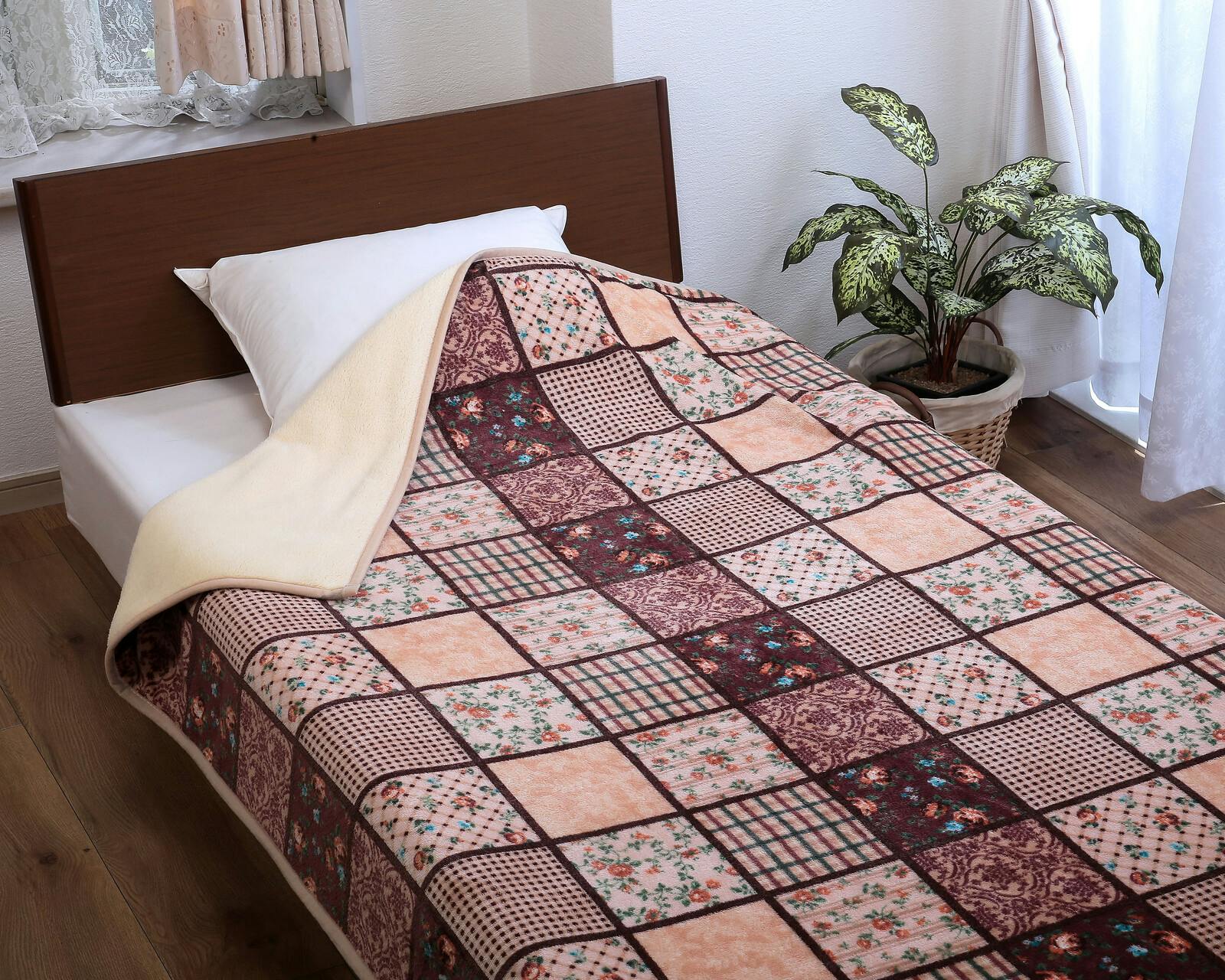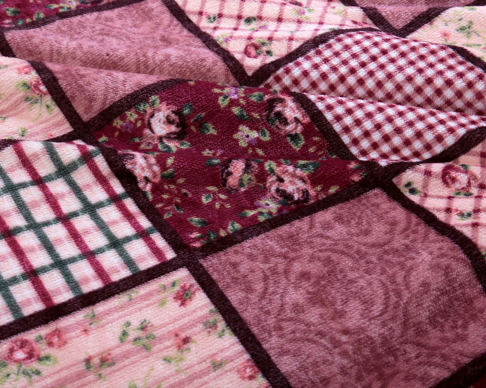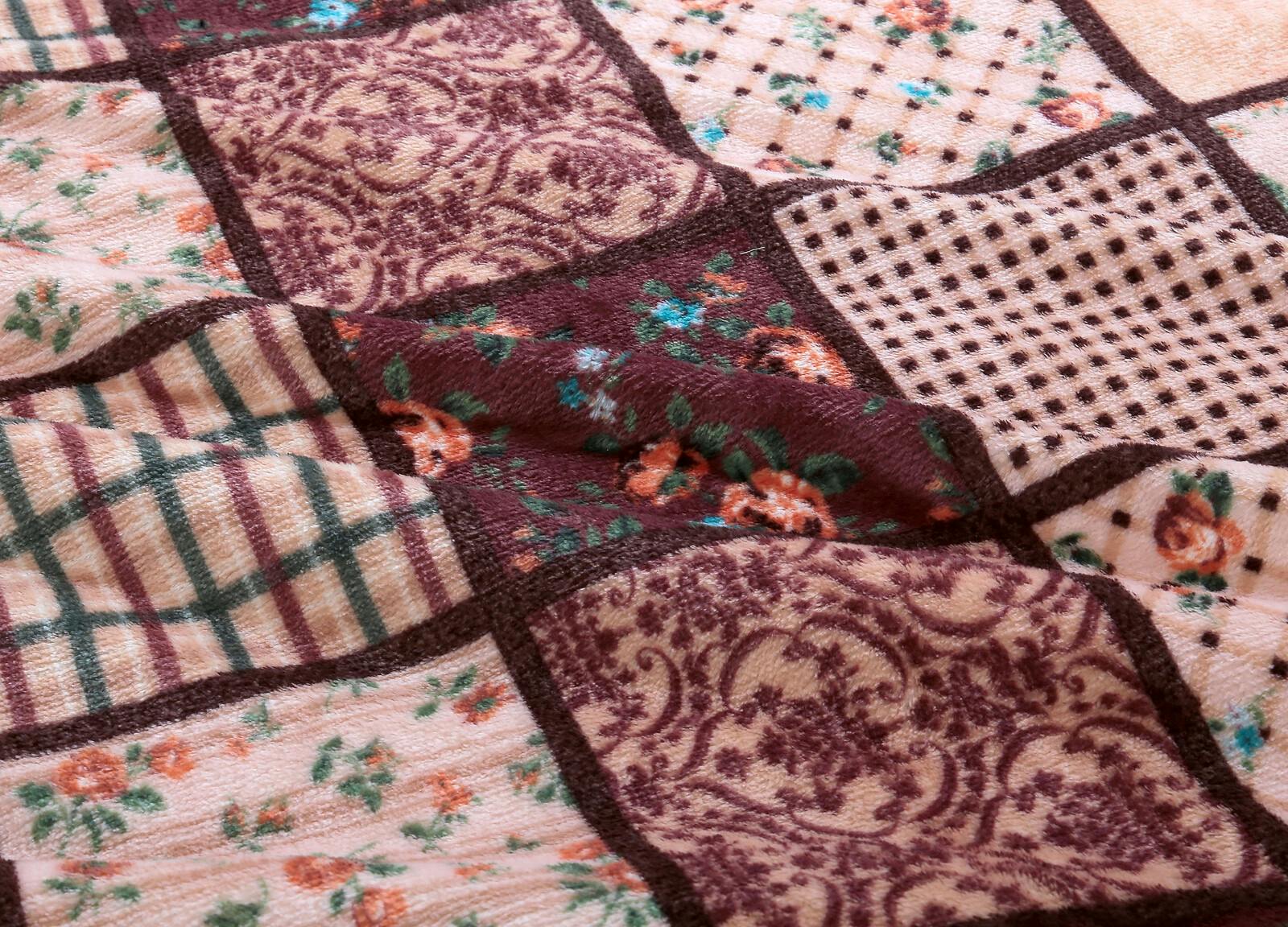 パッチワーク調あったか中わた入り毛布 【2色組】カラー:ワイン+ブラウン 軽い ボリューム毛布 合わせ毛布 フランネル毛布使用 シープ調毛布 丸洗いOK! 【送料込み】 #4589978836324 flife