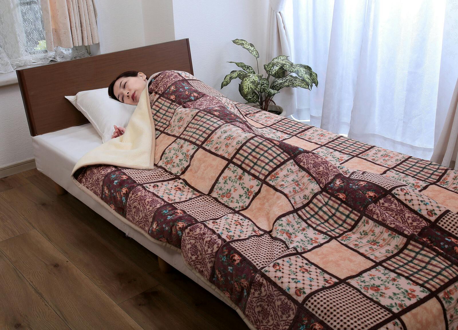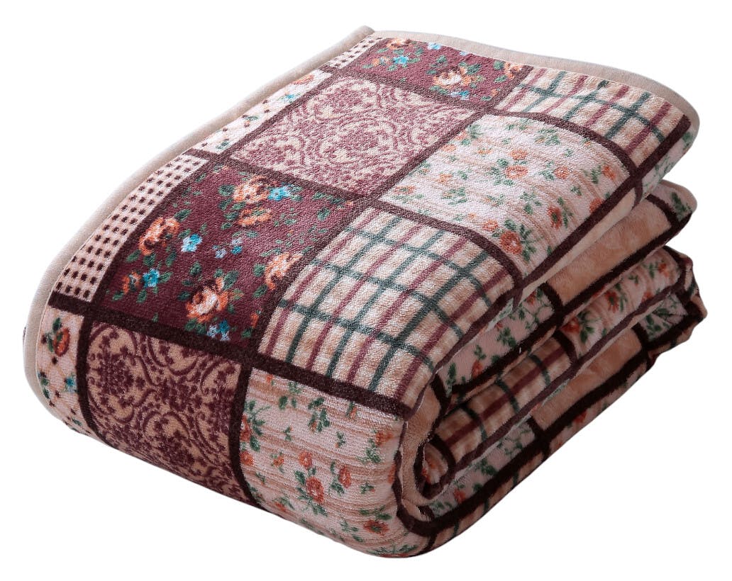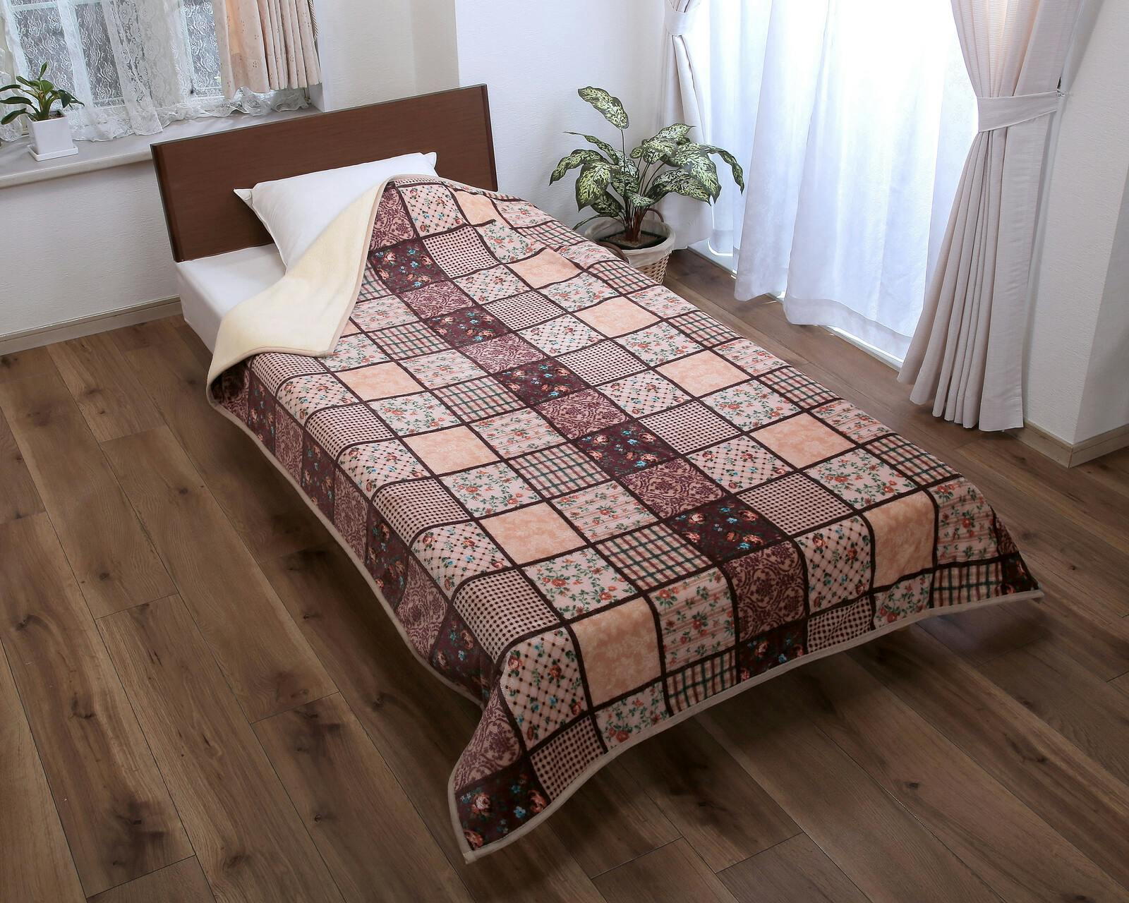 パッチワーク調あったか中わた入り毛布 【2色組】カラー:ワイン+ブラウン 軽い ボリューム毛布 合わせ毛布 フランネル毛布使用 シープ調毛布 丸洗いOK! 【送料込み】 #4589978836324 flife