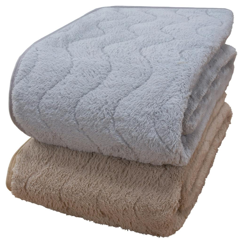 吸湿発熱ムートン調ボリューム敷パッド2色組 グレー系+ベージュ系 フランネル毛布生地 吸湿発熱 四隅ゴムバンド付き 節電対策 【送料込み】 #4589978836379 flife