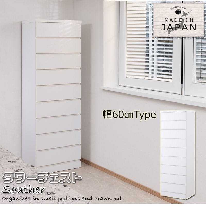 SOUTHER 全段スライドレール付き 引出しごと入れ替えができるデザインタワーチェストシリーズ 日本製 完成品 全段レール付き 幅60 奥行40 高さ173.5 タワーチェスト チェスト タワー ハイチェストリビング収納 たんす