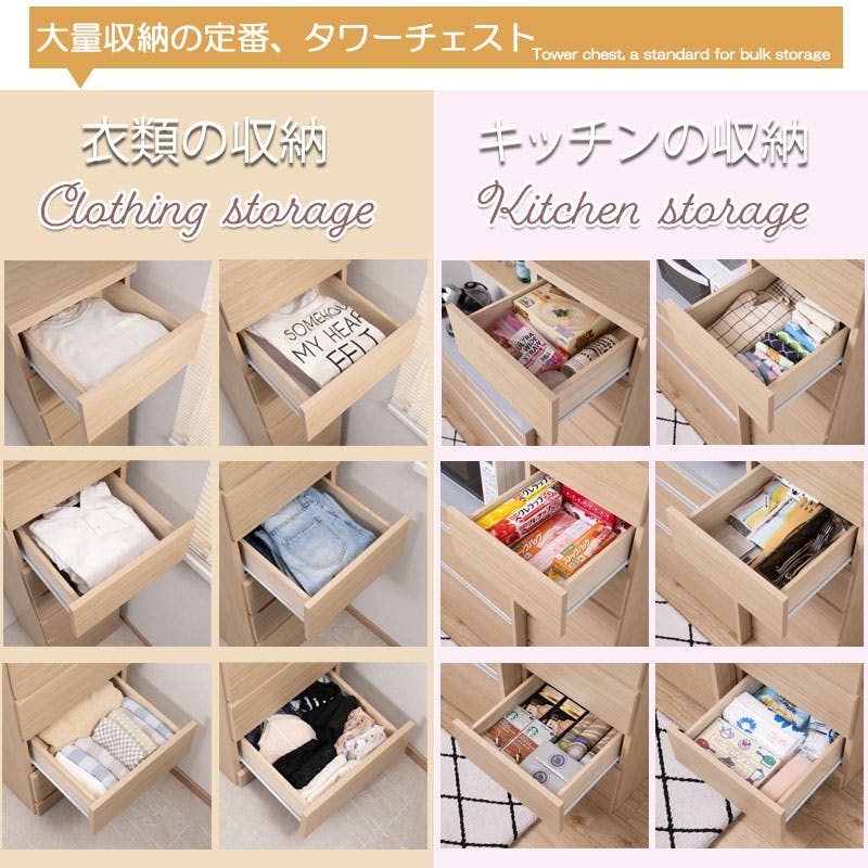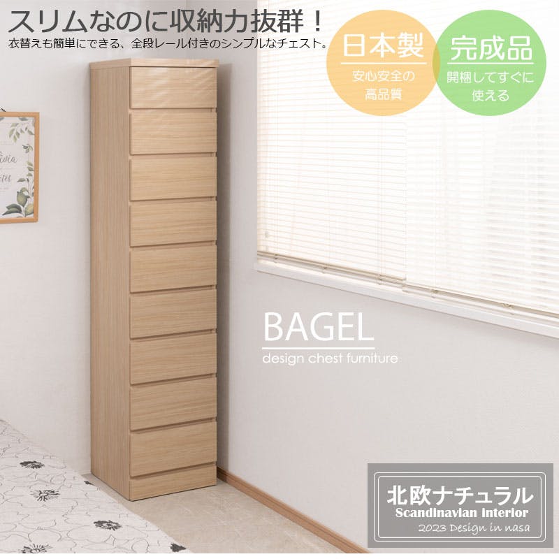 BAGEL 全段スライドレール付き 引出しごと入れ替えができるデザインタワーチェストシリーズ 日本製 完成品 全段レール付き 幅40 奥行40 高さ173.5 タワーチェスト チェスト タワー ハイチェストリビング収納 たんす