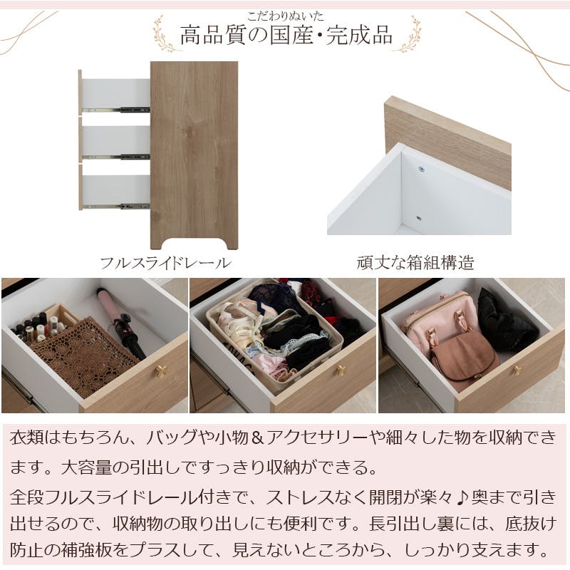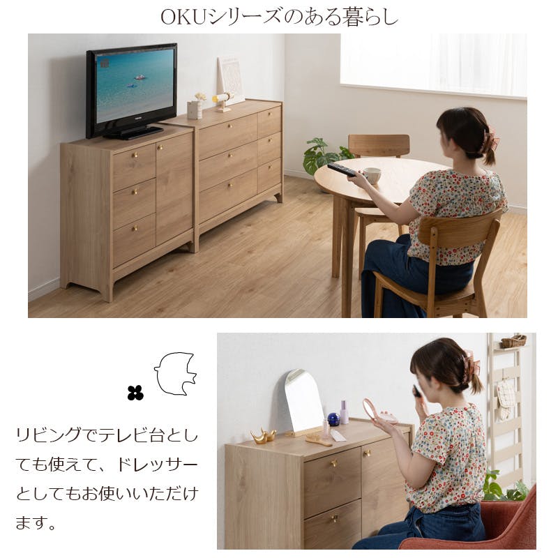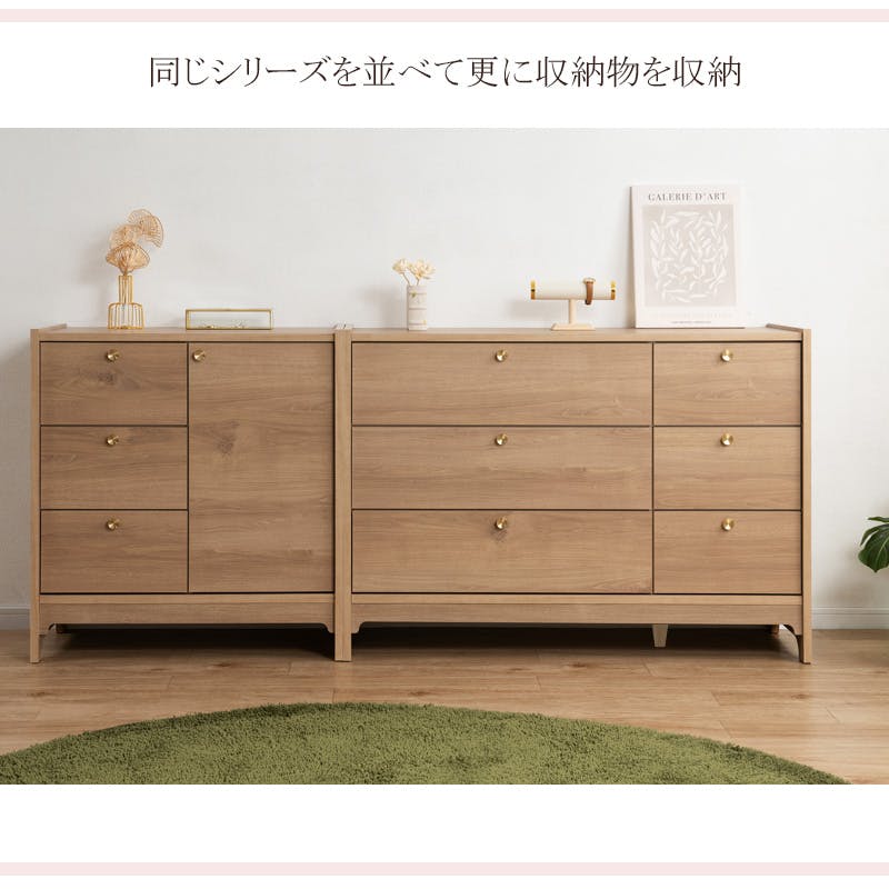 丸型の真鍮取っ手×優しい木目【OKU】シリーズ ナチュラル キャビネット 幅80cm 完成品 日本製 北欧 真鍮 A4 フルスライドレール リビングボード 大容量収納 ドレッサー リビング 一人暮らし 新生活 取っ手 引出し