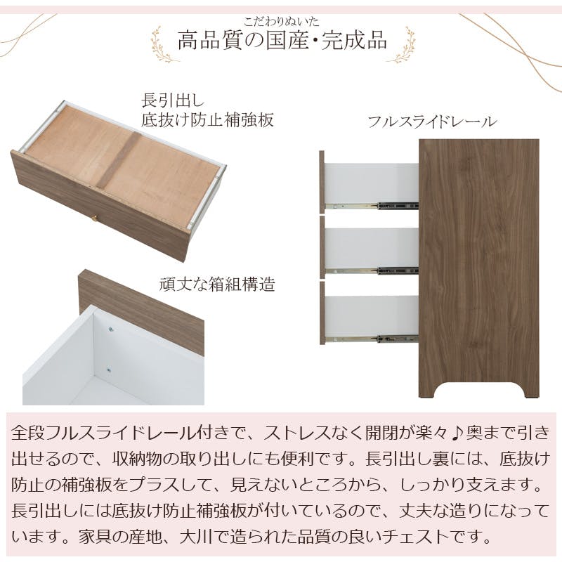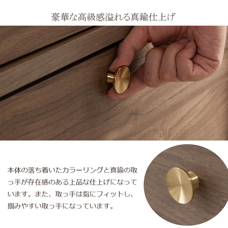 丸型の真鍮取っ手×優しい木目【OKU】シリーズ ブラウン チェスト 幅120cm 完成品 日本製 北欧 真鍮 フルスライドレール リビングボード 大容量収納 リビング 一人暮らし 新生活 取っ手 引出し 衣類収納 省スペース