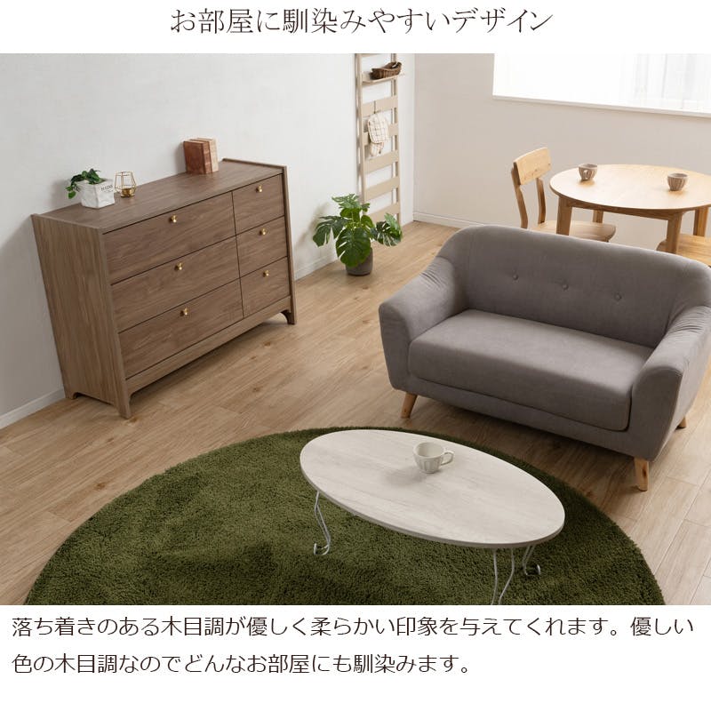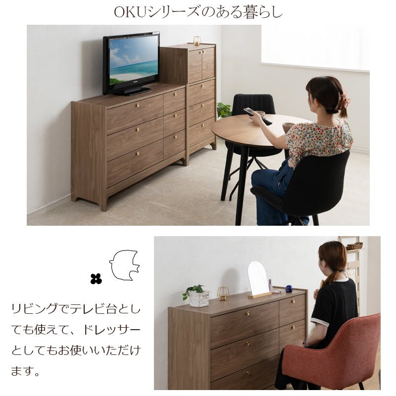 • 丸型の真鍮取っ手×優しい木目【OKU】シリーズ ブラウン チェスト 幅120cm 完成品 日本製 北欧 真鍮 フルスライドレール リビングボード 大容量収納 リビング 一人暮らし 新生活 取っ手 引出し 衣類収納 省スペース