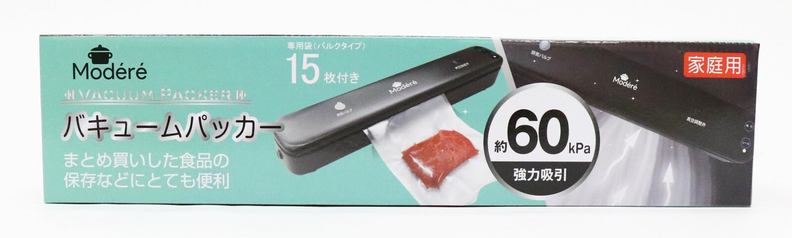 [仕様] ●電源:AC100V(50/60Hz) ●定格消費電力:85W ●使用環境温度:約0~40度 ●吸引圧:約60kPa(約450mmHg) ●シール時間:(吸引+シール)約35秒・(シール時)約10秒(周囲温度20度の場合) ●シール可能幅:約30cm ●接着部温度:約140度 ●コードの長さ:約140cm [付属品] 専用パック用袋(約15×25cm)×15枚、取扱説明書 ●6ヶ月間保証書付き