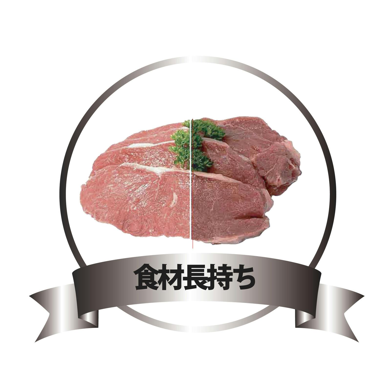 まとめ買いした食材を真空パックして長期保存! ●食材の美味しさをそのまま真空パック!調味料と一緒にパックすれば味の染みこみも早くなって便利。 ●酸化を防いで食材長持ち! ●あっという間に真空&密封! ●操作は簡単!吸引ボタンを2回押すと袋内の空気を吸引後に袋を密封します。柔らかいものは空気を抜かずに密封のみも可能 ●野菜も・魚も ●カステラ等の柔らかいものは密封のみでもOK ●スグ使えて便利!専用袋15枚付き