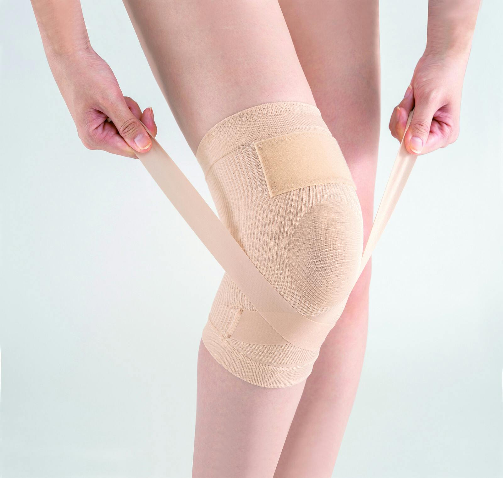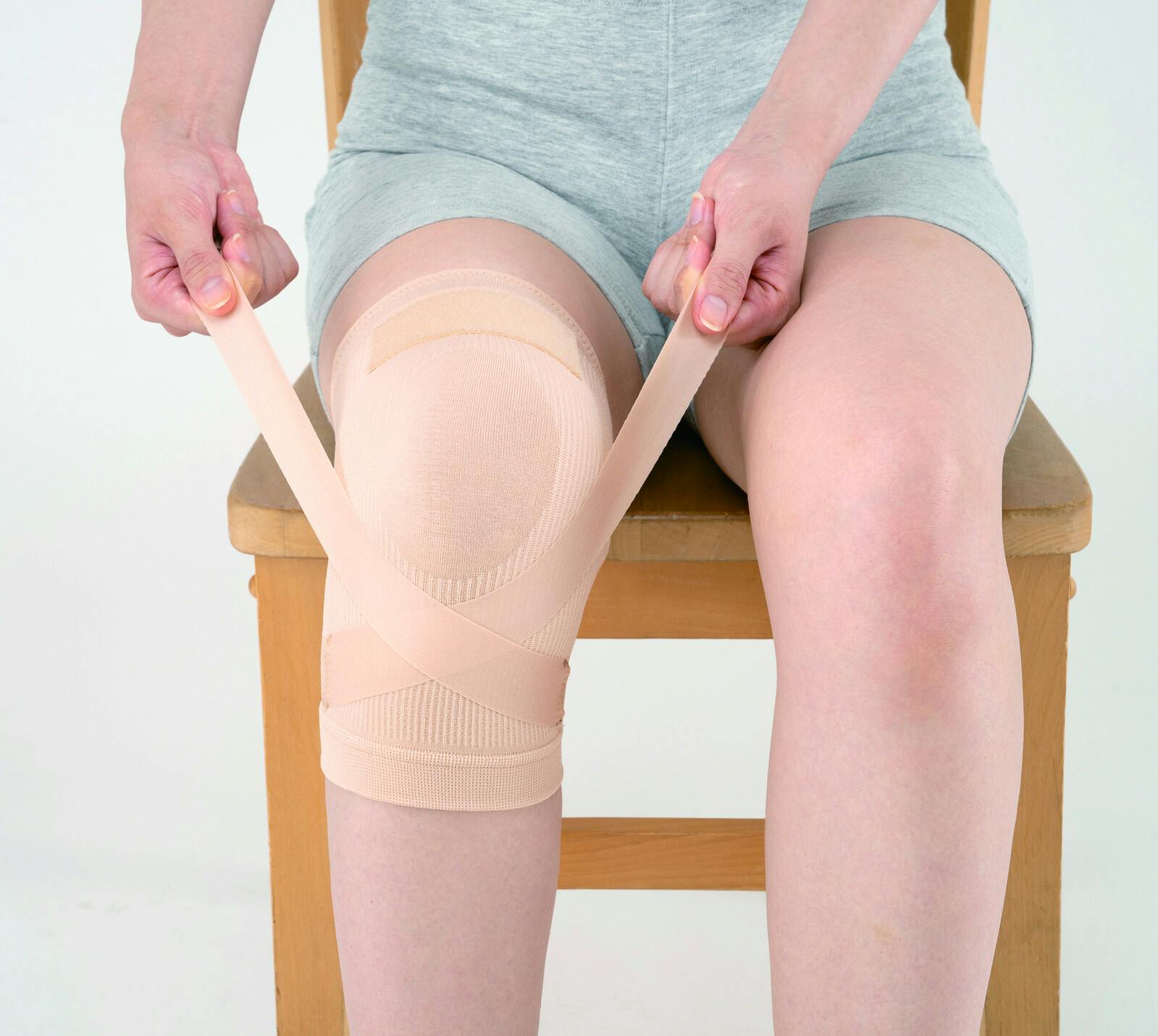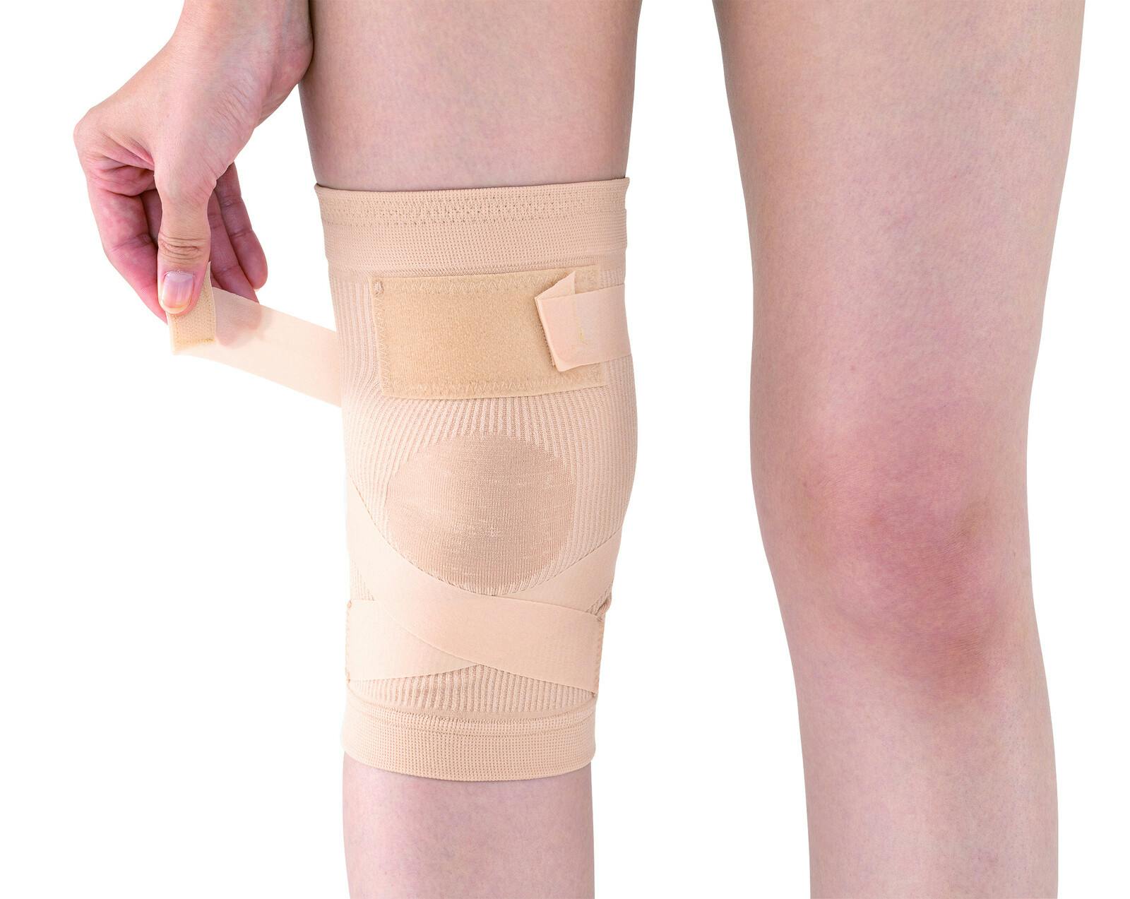 筋肉バンドで力強く、曲げ伸ばしを楽に!元気に、長く歩ける! ●色/ベージュ ●筋肉バンド+強圧生地のWサポート。膝を鍛えながら動かす筋肉みたいなバンド
