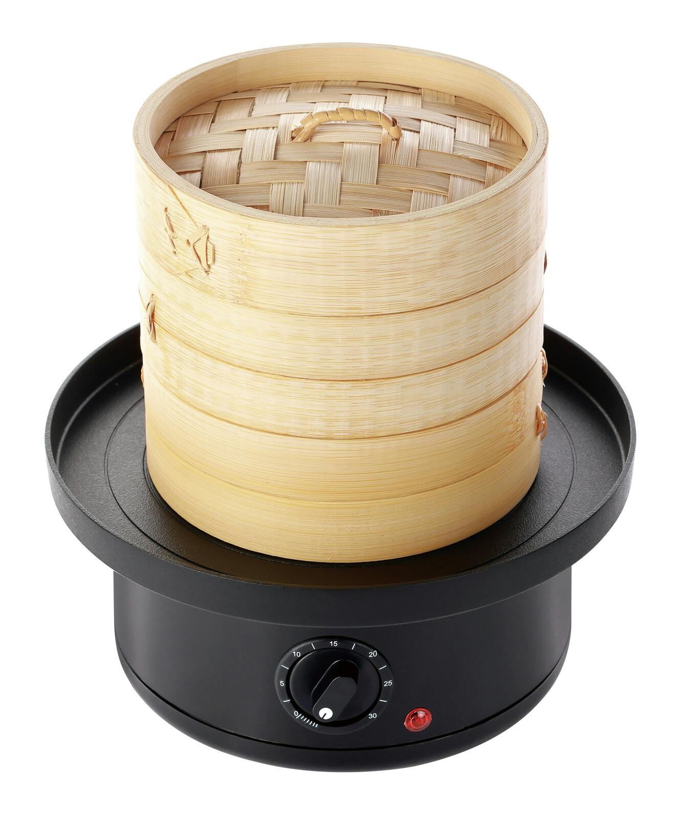 [仕様] ●定格電圧:AC100V ●定格周波数:50/60Hz ●消費電力:400W ●温度ヒューズ:133度 ●本体容量:MAX500ml ●タイマー時間:最大30分 [セット内容] 本体、せいろセット(15cm)、受け皿、ガイド冊子 ●1年間保証書付き