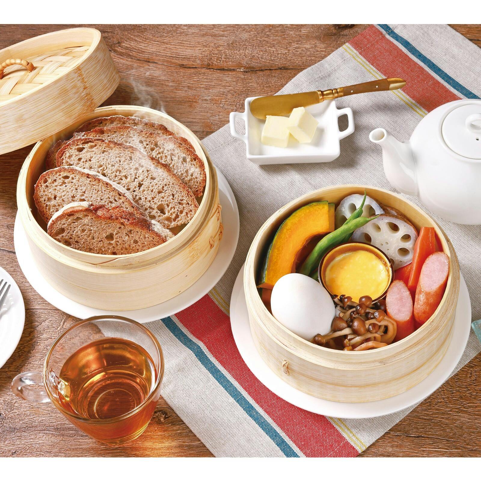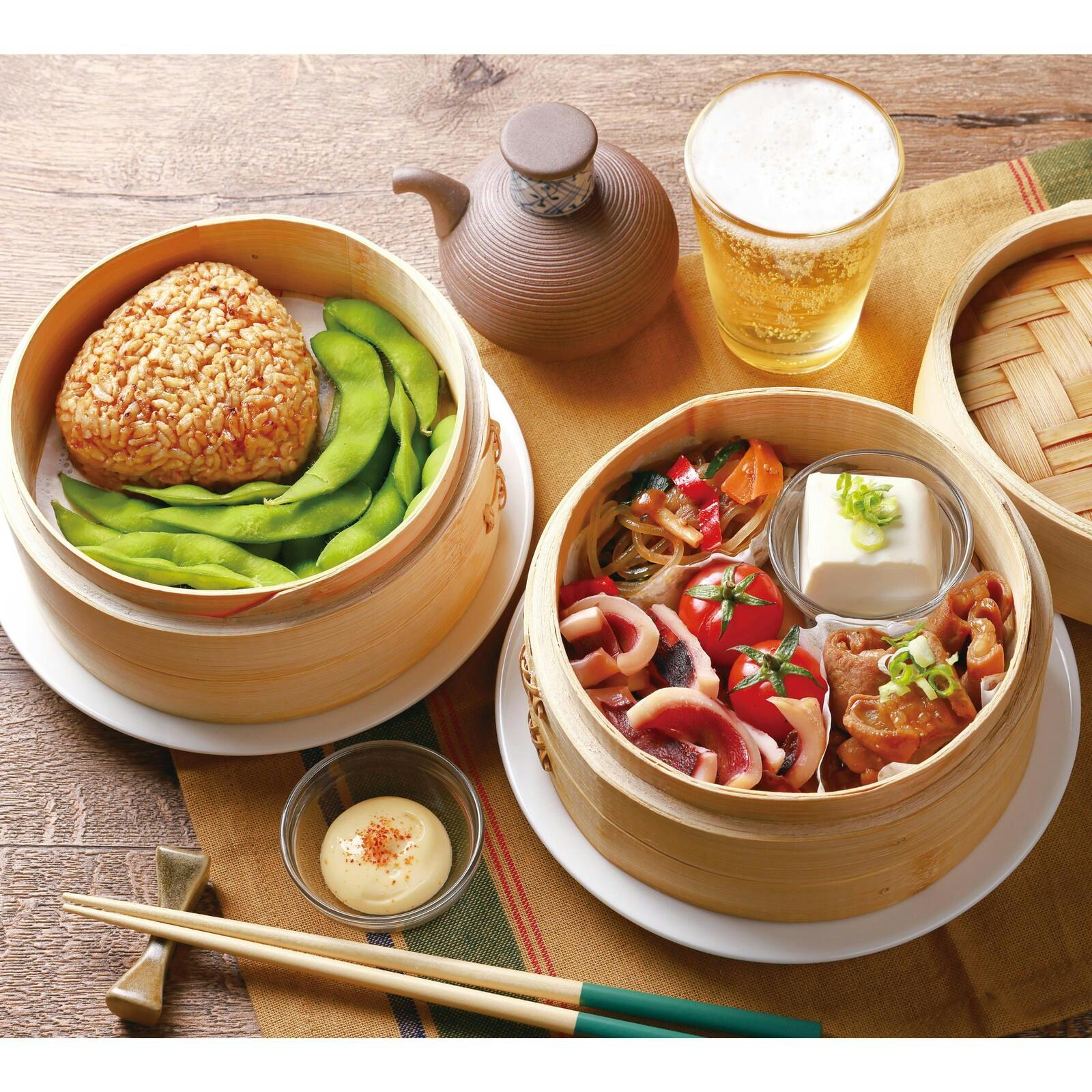 本体・受け皿:PP、せいろ:竹