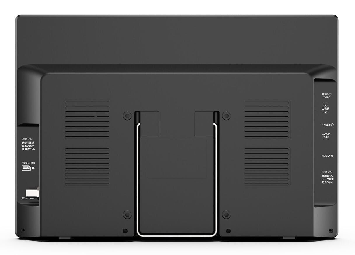 ●内蔵充電池:Li-PO 7.4V、2000mAh、14.8Wh、(充電/駆動の目安:充電約4時間/駆動約1.5時間程度 ※記載時間は大まかな目安です。使用方法や設置環境などにより変化します。) ●入出力端子:電源入力(USB-C)、HDMI入力、イヤホン出力、アンテナ入力、miniB-CASスロット、AV入力、USB2.0(A)×2(録画用/メディアプレーヤー用)