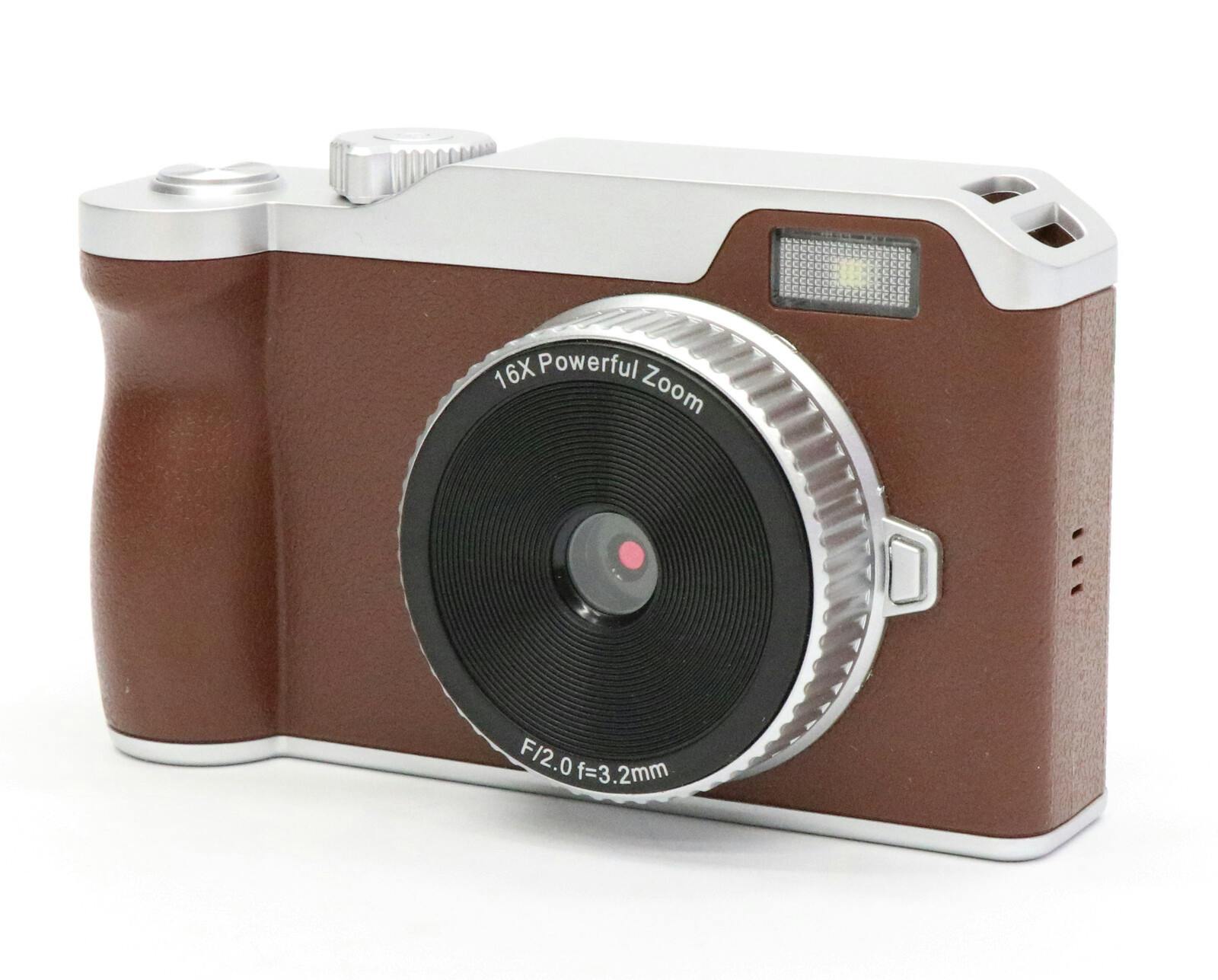 シンプル操作で使いやすいレトロ調デジカメ! ●使いやすいコンパクトサイズながら本格機能が充実。写真や動画も高画質で、ワンタッチで手軽に撮影ができます。 ●約100万画素、デジタル16倍ズーム、動画撮影、フラッシュ機能、セルフタイマー、自撮り用カメラ付き ●2.4インチIPS液晶パネル:大型2.4インチ液晶パネルはどの角度からでも鮮明に映し出し撮影確認が簡単