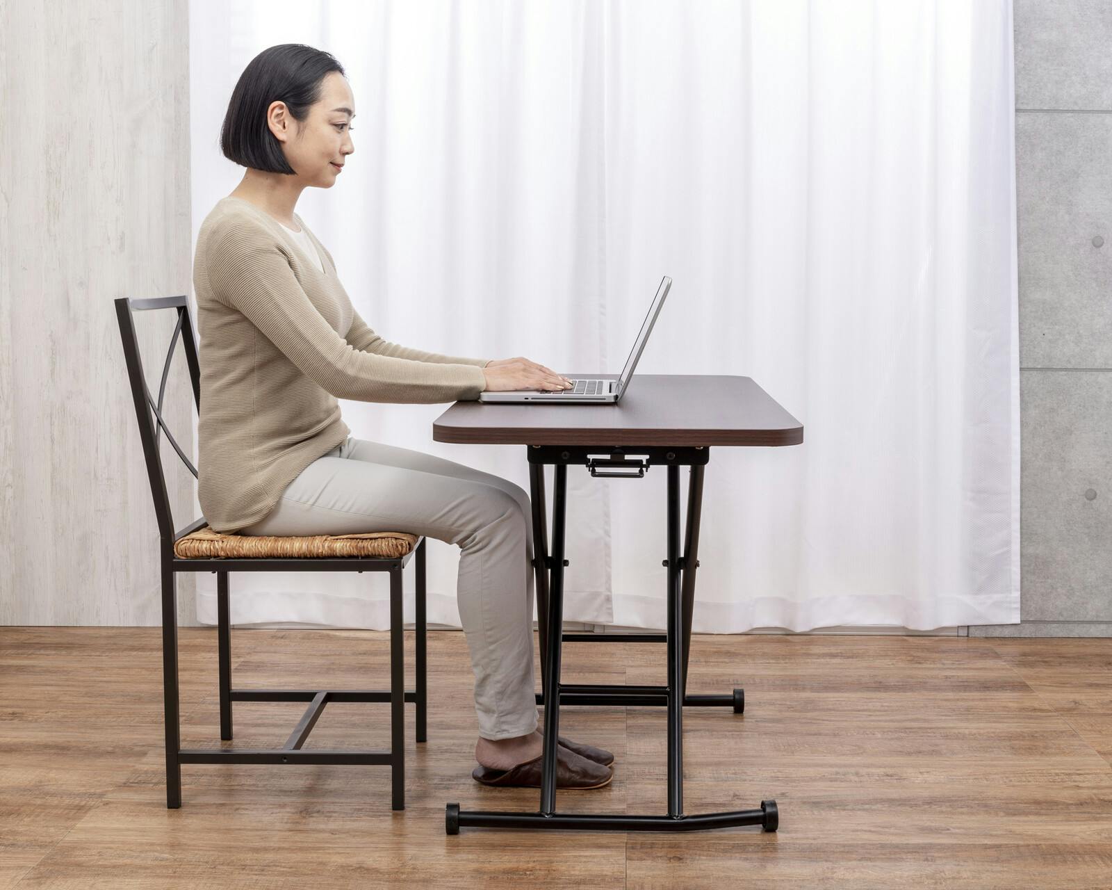 ●約11~71cm無段階高さ調節可能。 ●ワンタッチレバーでらくらく昇降。 ●コロ付きで移動もラクラク。 ●座卓として、椅子やソファに座って、作業台として ●組立不要完成品