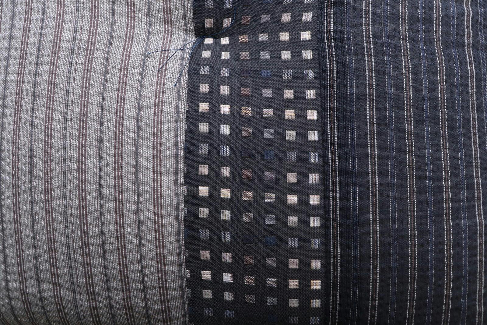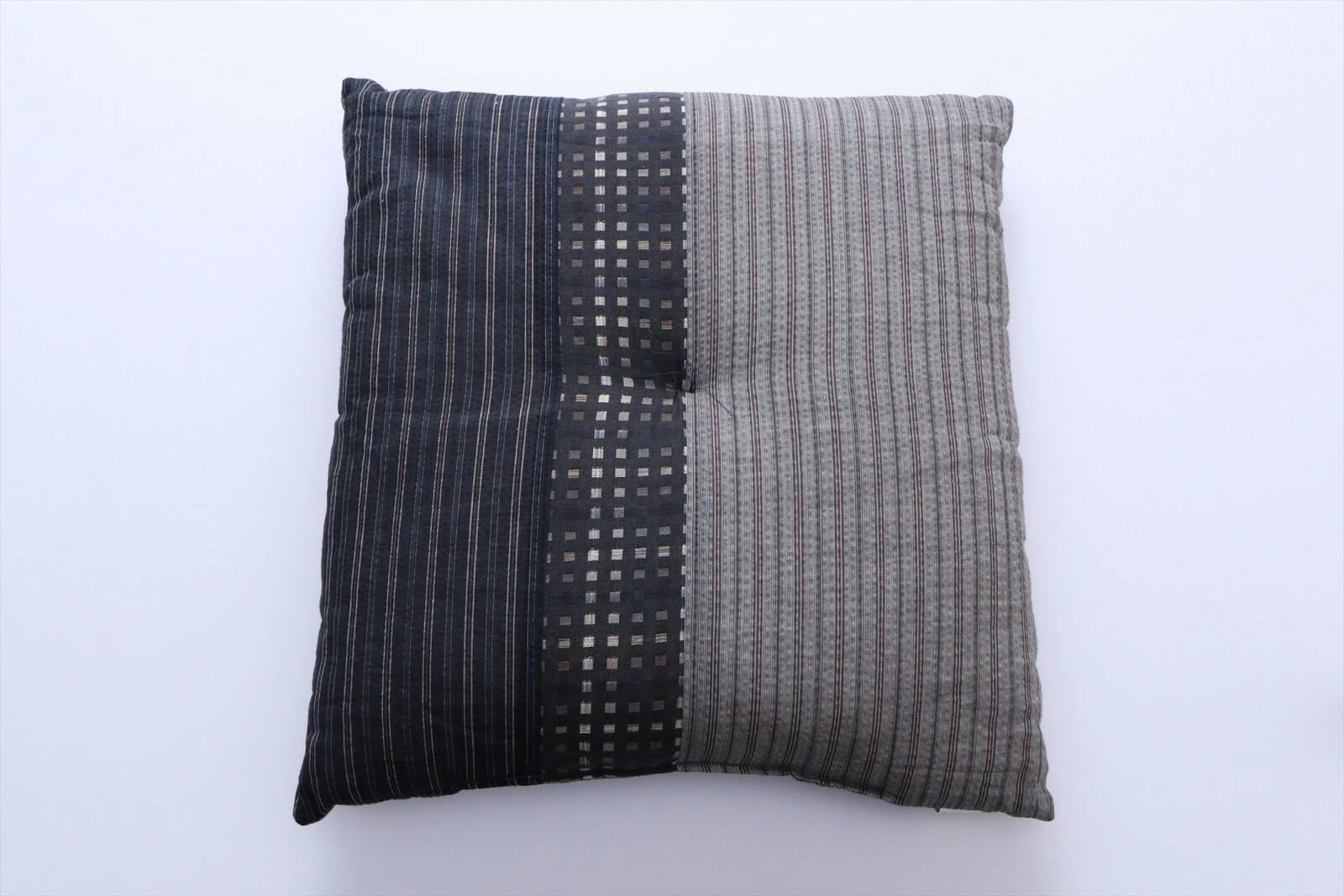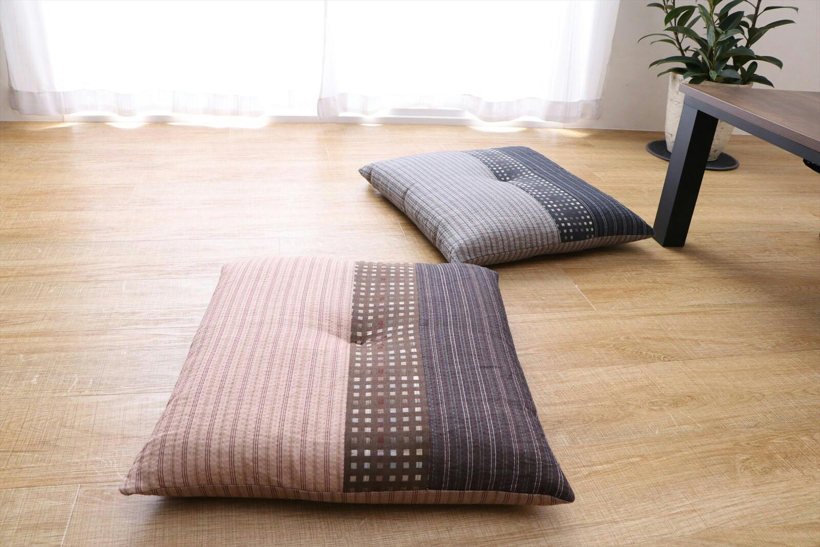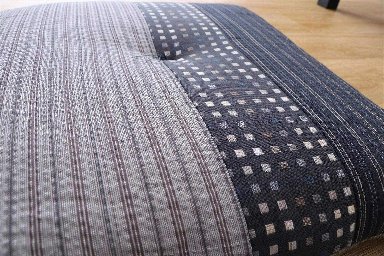 さらっとして心地良いしじら生地使用の座布団 ●生地をパッチワークして和モダンに仕上げました。国内で丁寧に綿入れを行い、ふかふかの座り心地です。 ●綿100%(側生地)
