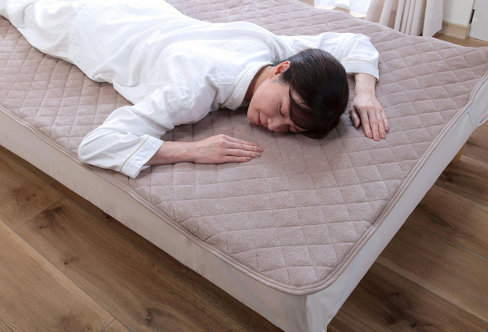 暖かく滑らかな肌触りの敷パッド ●色/ピンク・ベージュ・グリーン ●中わた入りでふんわりソフトな寝心地。布団に入るときのヒンヤリ感がなく快適! ●寒い夜にぴったり! ●四隅にゴムバンド付き ●敷布団にも使用OK ●丸洗いOK
