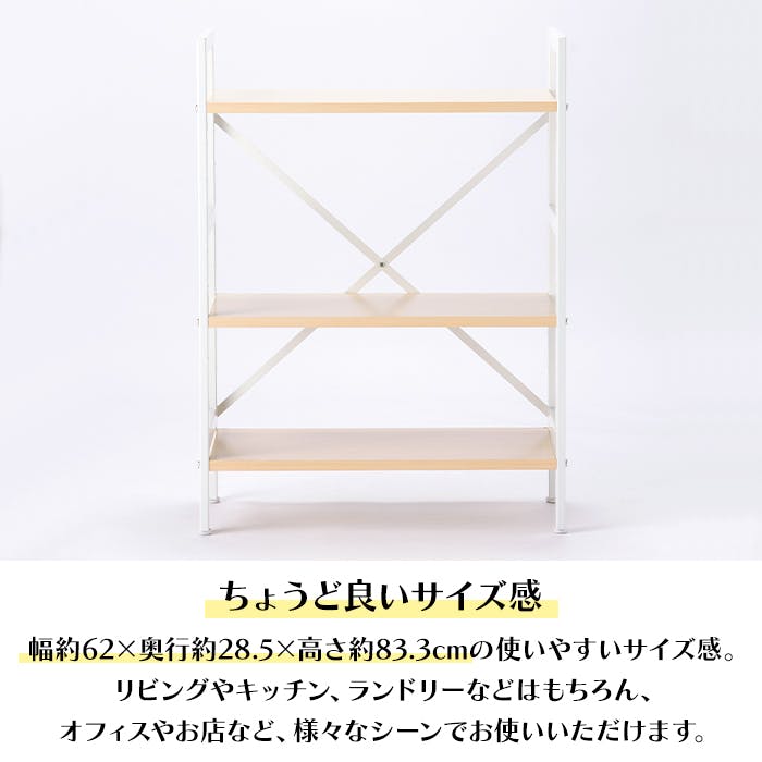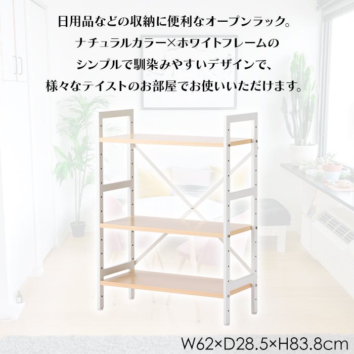 • オープンラック スリム 3段 オープンシェルフ ラック 北欧 幅62cm マルチラック ブックシェルフ