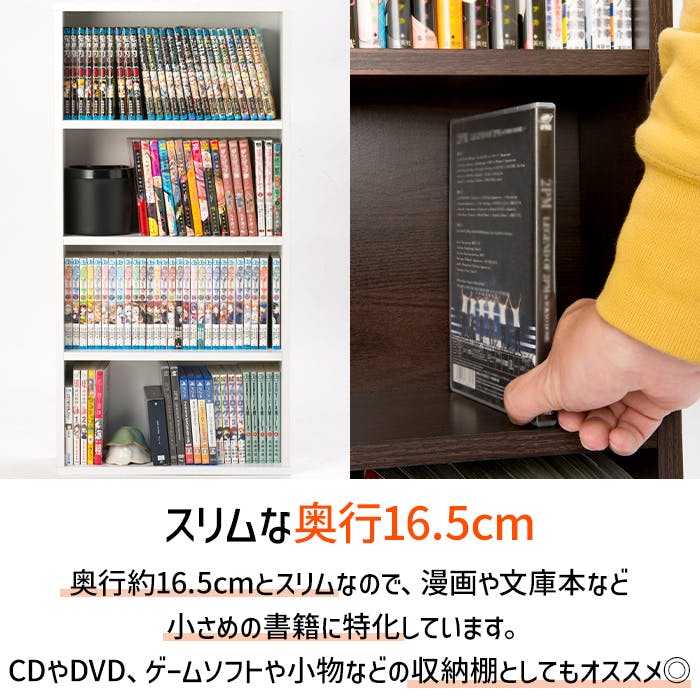 本棚 スリム コミックラック 薄型 4段 幅45cm 書棚 CDラック DVDラック 同色2個セット