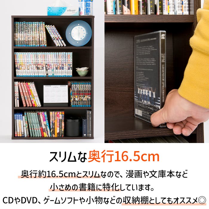 本棚 スリム コミックラック 薄型 4段 幅60cm 書棚 CDラック DVDラック 同色2個セット