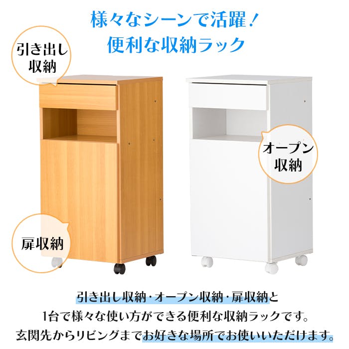 • キャビネット キャスター付き サイドワゴン 収納ボックス 扉付き 引出し マルチラック