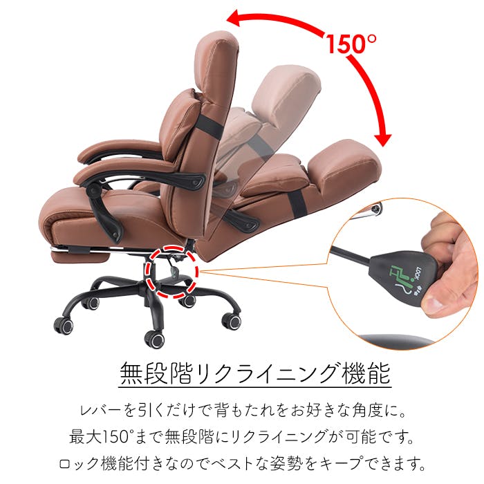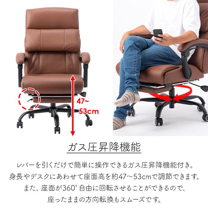 リクライニングチェア 本革 ハイバック キャスター付き 昇降式 回転 アームレスト フットレスト付き