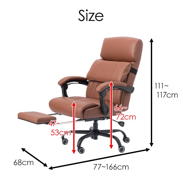 幅68×奥行77~166×高さ111~117cm(座面高47~53cm)