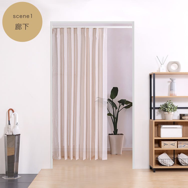 つっぱり式のファブリックアコーディオンカーテン(麻混タイプ) 100×174cmサイズ!つっぱり式だから簡単に取り付けできます!廊下、キッチン、洗面所など家の中の様々なところでご使用できます!ネジを使わないので賃貸にもおすすめ!
