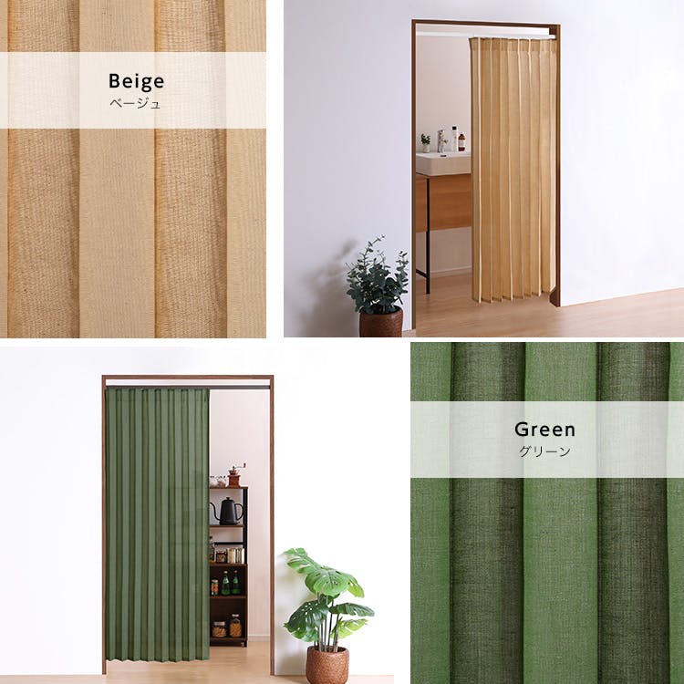 つっぱり式のファブリックアコーディオンカーテン(麻混タイプ) 100×174cmサイズ!つっぱり式だから簡単に取り付けできます!廊下、キッチン、洗面所など家の中の様々なところでご使用できます!ネジを使わないので賃貸にもおすすめ!