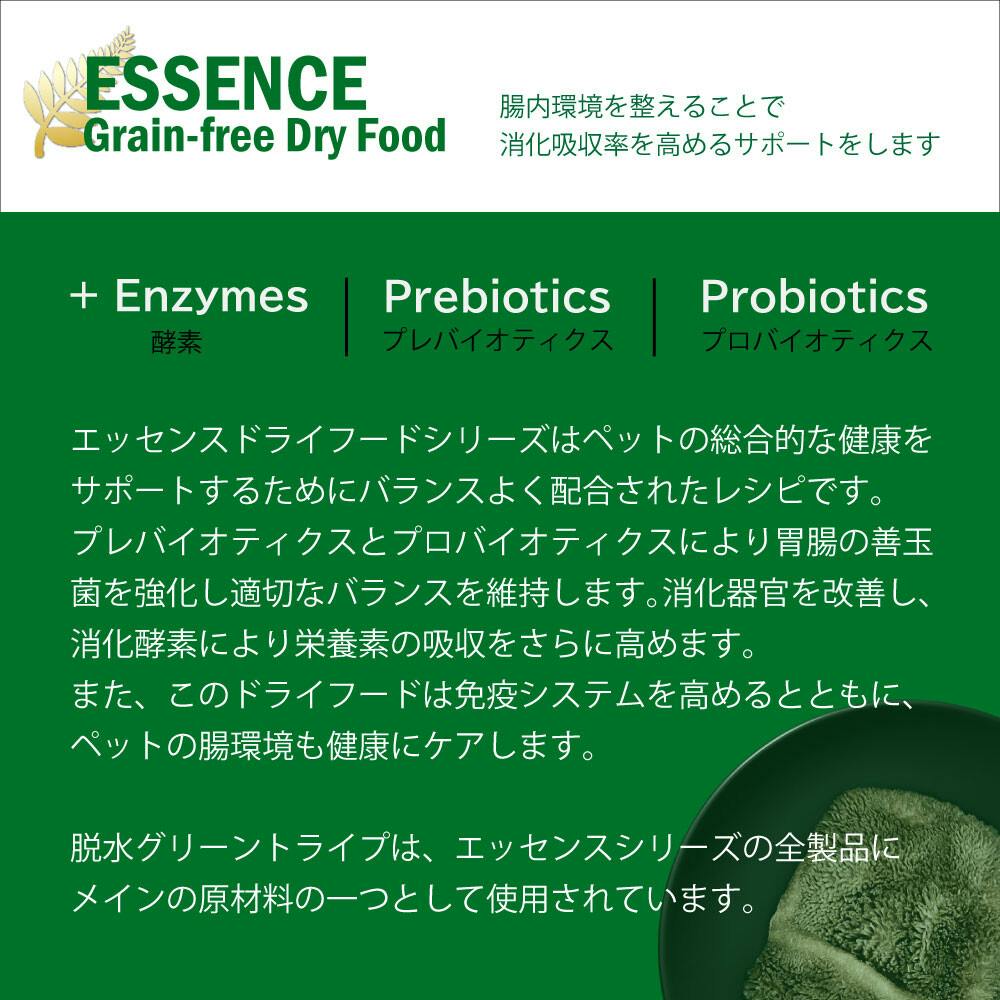 塩化コリン、プレバイオティクス(フラクトオリゴ糖(FOS)、マンナンオリゴ糖(MOS))、タウリン、ケルプ、ユッカシジゲラエキス、L-リジン、酵素(アミラーゼ、プロテアーゼ)、プロバイオティクス(枯草菌)、DL-メチオニン、ミックストコフェロール、ローズマリーエキス / 粗たんぱく質 26.0%以上 、粗脂肪 14.0% 以上、粗繊維 3.1%以下、粗灰分 12%以下、水分 8.9%以下、オメガ3 0.5%以上、オメガ6 2.1%、タウリン 0.17%以上