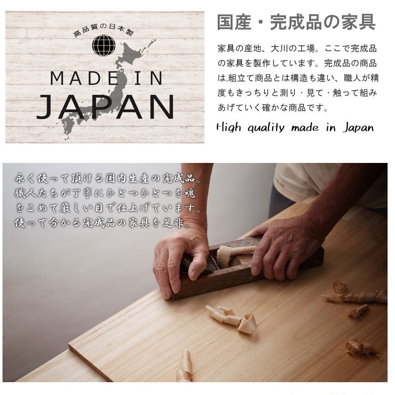 ■商品サイズ/本体:(約)幅119×奥行40×高さ67cm■引出し内寸/幅119cmタイプ:(約)幅(小)31(大)70×奥行33.5×深さ11.5(有効13.5)cm■耐荷重量/天板:(約)20kg■商品重量/幅119cmタイプ:(約)28kg■日本製■完成品