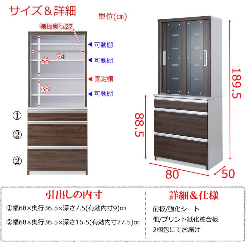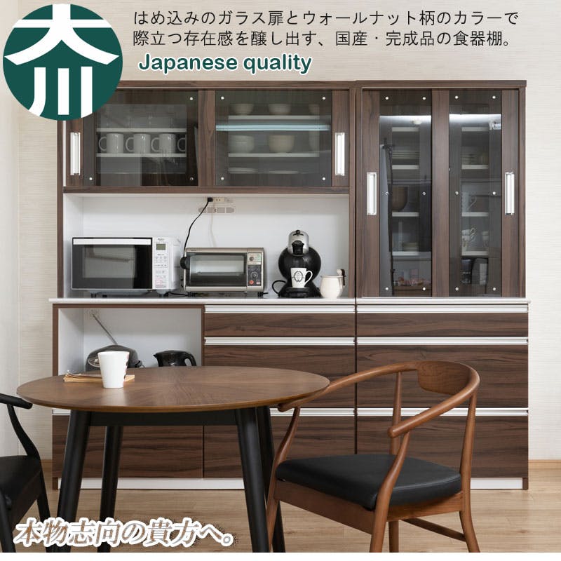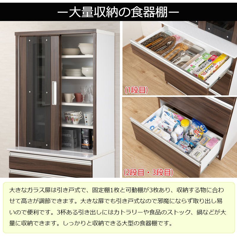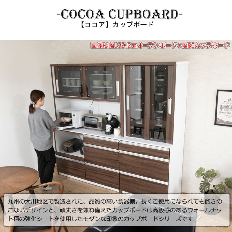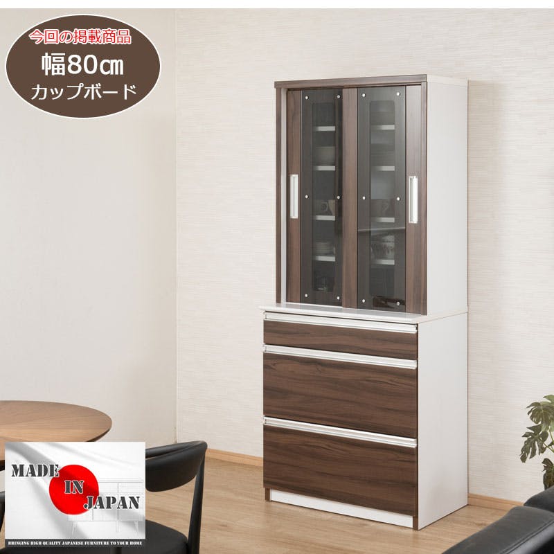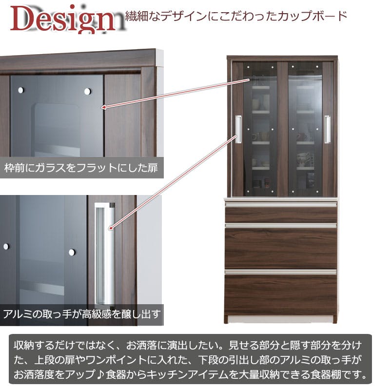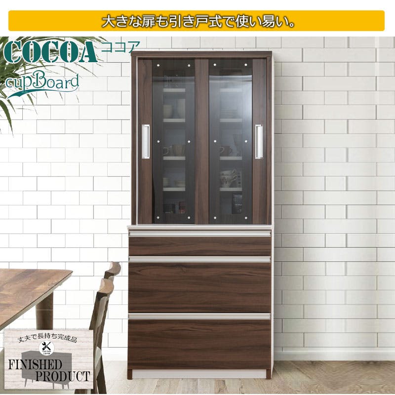 開梱設置付き 【COCOA】 ココアシリーズ カップボード 食器棚 幅80cm ウォールナット 日本製 完成品 キッチン収納 キッチン 引き戸 新生活 一人暮らし 新居 収納 サイドボード キャビネット モダン おしゃれ モダン 収納棚 カトラリー収納