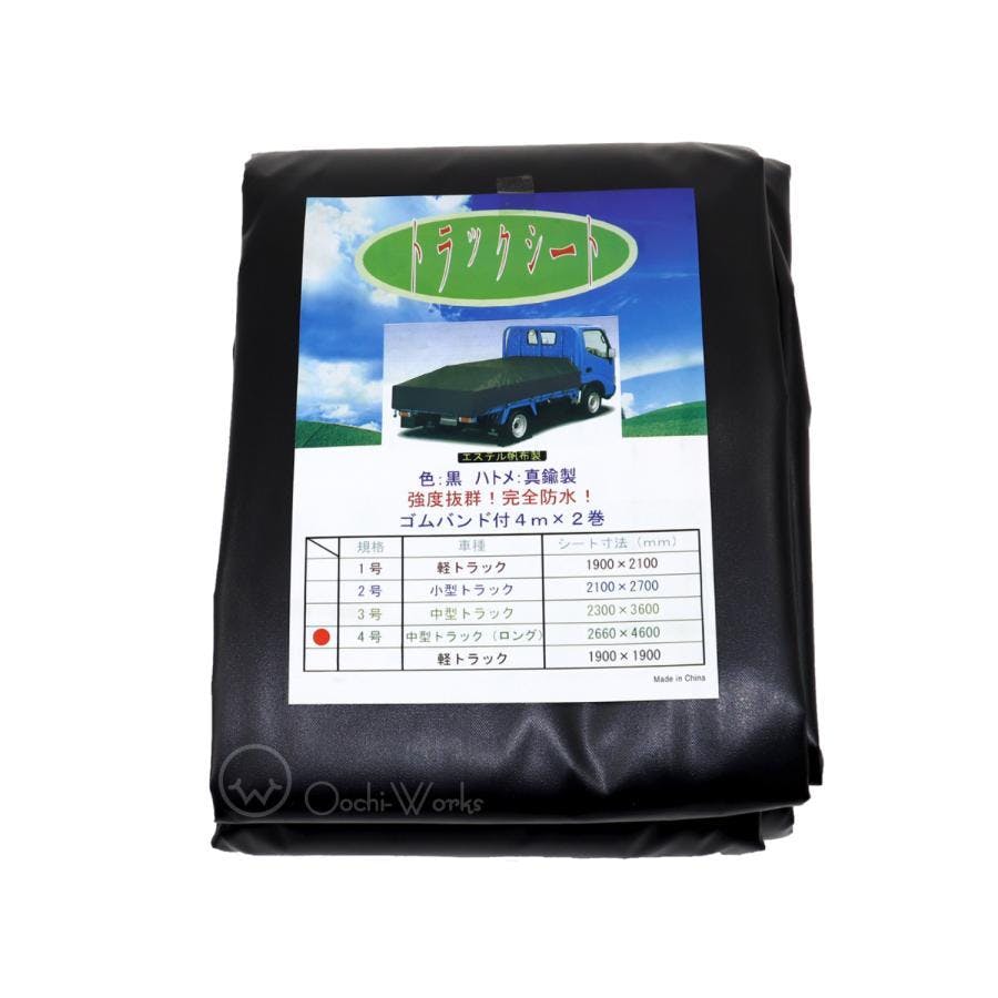 トラックシート ブラック 4号 2.66m×4.6m コードゴム4m×2本付き エステル帆布 2tロングトラック 荷台カバー