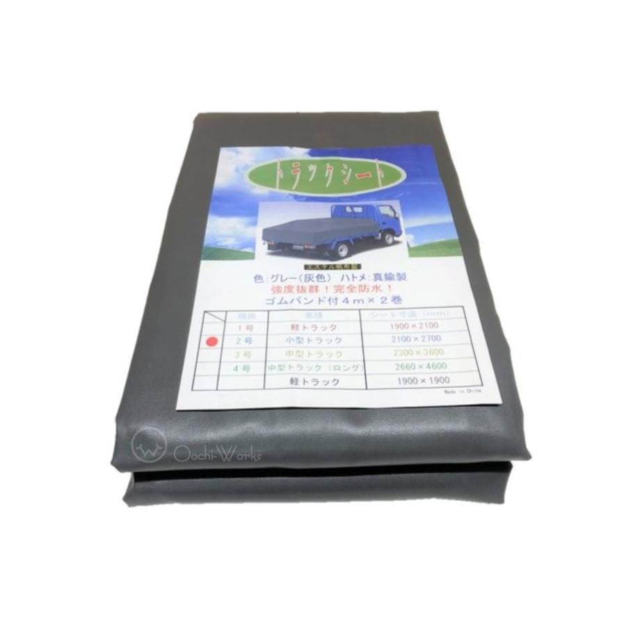 トラックシート グレー 2号 2.1m×2.7m コードゴム4m×2本付き ダブルキャブ エステル帆布 荷台カバー 荷台シート